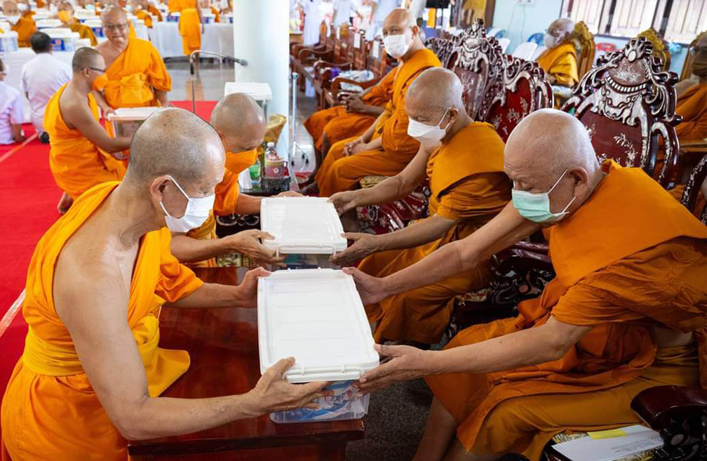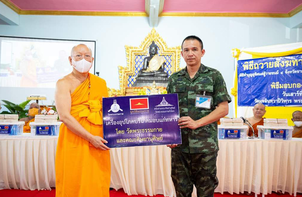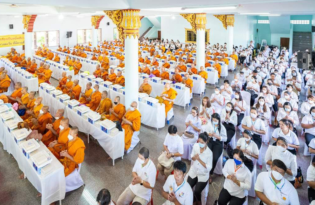 โดยมีพิธีตักบาตรข้าวสารอาหารแห้ง ภาคสายเป็นพิธีมอบกองทุนหนุนแรงใจช่วยครูใต้ ปีที่ 16 ครั้งที่ 128 พิธีทำบุญอุทิศส่วนกุศลแด่ผู้วายชนม์ อันเนื่องมาจากเหตุการณ์ความไม่สงบ และพิธีถวายสังฆทานแด่คณะสงฆ์ 323 วัด 4 จังหวัดชายแดนภาคใต้ ปีที่ 19 ครั้งที่ 163 โดยได้รับความเมตตาจากพระธรรมวชิรเวที เจ้าคณะภาค 18 เป็นประธานสงฆ์ นายณัฐกฤช สิทธิโอสถ รองผู้ว่าราชการจังหวัดปัตตานีปฏิบัติหน้าที่แทนผู้ว่าราชการจังหวัดปัตตานี ประธานฝ่ายฆราวาส ต่อด้วยพระภาวนาธรรมวิเทศ ผู้ช่วยเจ้าอาวาสวัดพระธรรมกายและผู้แทนกัลยาณมิตรทั่วทั้งโลกกล่าวความในใจ และเปิดวีดีโอประมวลภาพทบทวนงานฟื้นฟูศีลธรรมโลก ต่อด้วยพิธีเครื่องอุปโภคบริโภค แก่ทหาร ตำรวจที่ปฏิบัติหน้าที่ในพื้นที่เสี่ยงภัยเป็นสาธารณสงเคราะห์ ทั้งยังได้ทำบุญอุทิศส่วนบุญกุศลให้กับส.ต.ต.พิจักษณ์ บัวแก้ว ผบ.หมู่ นปพ.สภ.นาประดู่ จว.ปัตตานี พลีชีพจากเหตุคนร้ายบุกยิงป้อมทางกั้นรถไฟ เหตุเกิดเมื่อ 10 มิถุนายน ที่ผ่านมา