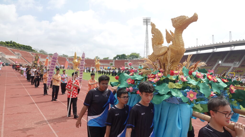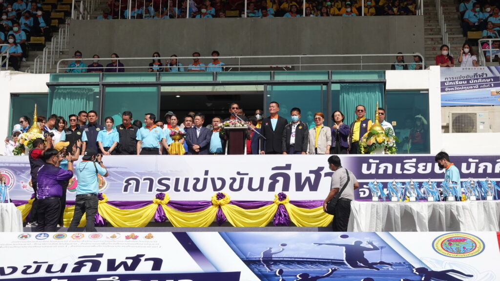 บรรยากาศพิธีเปิดการแข่งขันกีฬานักเรียน นักศึกษา มีขบวนพาเหรดจากโรงเรียนต่าง ๆ ในจังหวัดปทุมธานีสวยงามตระการตา ชูประเพณีวัฒนธรรม 7 อำเภอ และต้านยาเสพติด การแข่งขันกีฬานักเรียน นักศึกษา จังหวัดปทุมธานี ครั้งที่ 1 ในวันนี้ นักเรียน นักศึกษา เป็นทรัพยากรบุคคล ที่จำเป็นจะต้องพัฒนา ทั้งด้านร่างกาย จิตใจ อารมณ์ และสังคมควบคู่กันไป กิจกรรมทางด้านพลศึกษา ทางการกีฬา และนันทนาการ เป็นกิจกรรมที่เหมาะสมมากที่สุด ที่สมารถนำมาพัฒนา และบูรณาการทุกส่วนเข้าด้วยกันได้อย่างลงตัว องค์การบริหารส่วนจังหวัดปทุมธานี ได้กำหนดนโยบายด้านการกีฬา นันทนาการ และวิทยาศาสตร์การกีฬาไว้อย่างชัดเจน เพื่อพัฒนาให้เป็นรูปธรรม ตามแบบแผนการพัฒนา การกีฬาของชาติ กีฬายังนับเป็นปัจจัยสำคัญยิ่งประการหนึ่ง ที่จะส่งเสริมนักเรียน นักศึกษา ให้ตระหนักถึงคุณค่าของการกีฬา การเล่นกีฬาเพื่อการแข่งขัน ตั้งแต่ระดับขั้นพื้นฐาน ไปจนถึงระดับอาชีพ และการแข่งขันกีฬาในกลุ่มนักเรียน นักศึกษาจึงมีความสำคัญ ที่จะต้องพัฒนาขีดความสามารถ ของนักกีฬาแต่ละคน ให้พัฒนาขึ้น การแข่งขันมี 11 ชนิดกีฬา ดังนี้ 1.ฟุตบอล 7 คน และ 11 คน จำนวน 68 ทีม , 2.ฟุตซอล จำนวน 165 ทีม , 3.วอลเลย์บอลในร่ม และชายหาด จำนวน 194 ทีม , 4.เซปักตะกร้อ จำนวน 64 ทีม , 5.บาสเกตบอล จำนวน 150 ทีม , 6.เทเบิลเทนนิส จำนวน 71 ทีม , 7.แบดมินตัน จำนวน 212 ทีม , 8.กรีฑา จำนวน 818 ทีม , 9.เปตอง จำนวน 388 ทีม , 10.แชร์บอล จำนวน 40 ทีม และ 11.ชักกะเย่อ จำนวน 65 ทีม