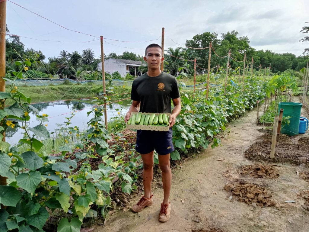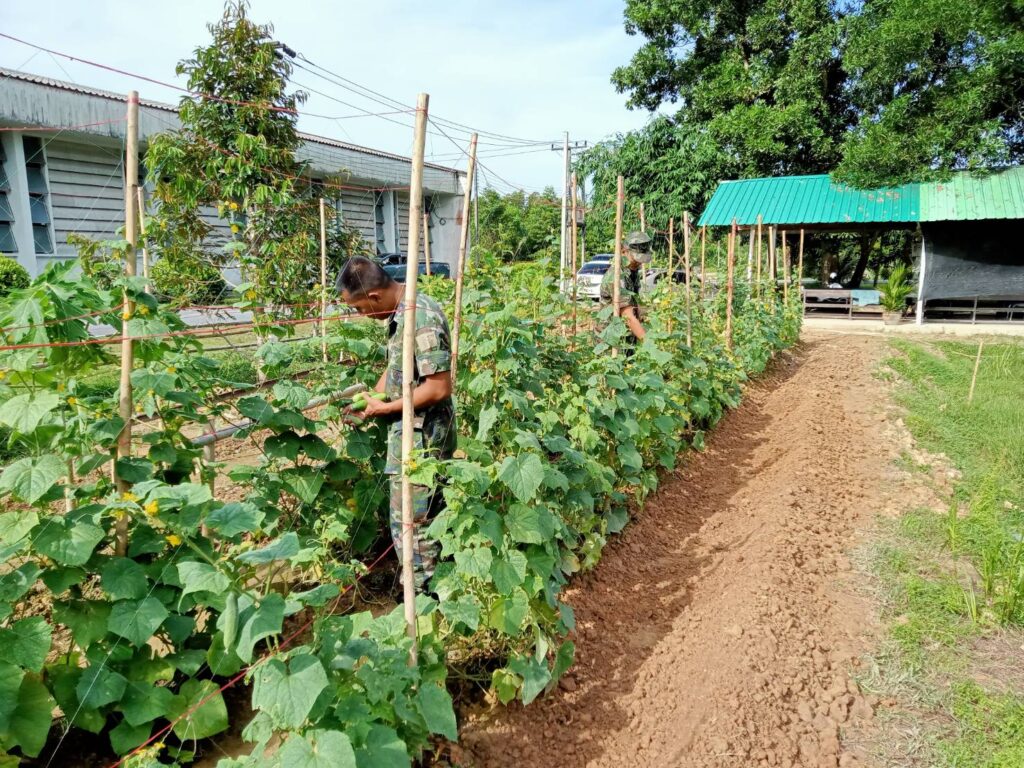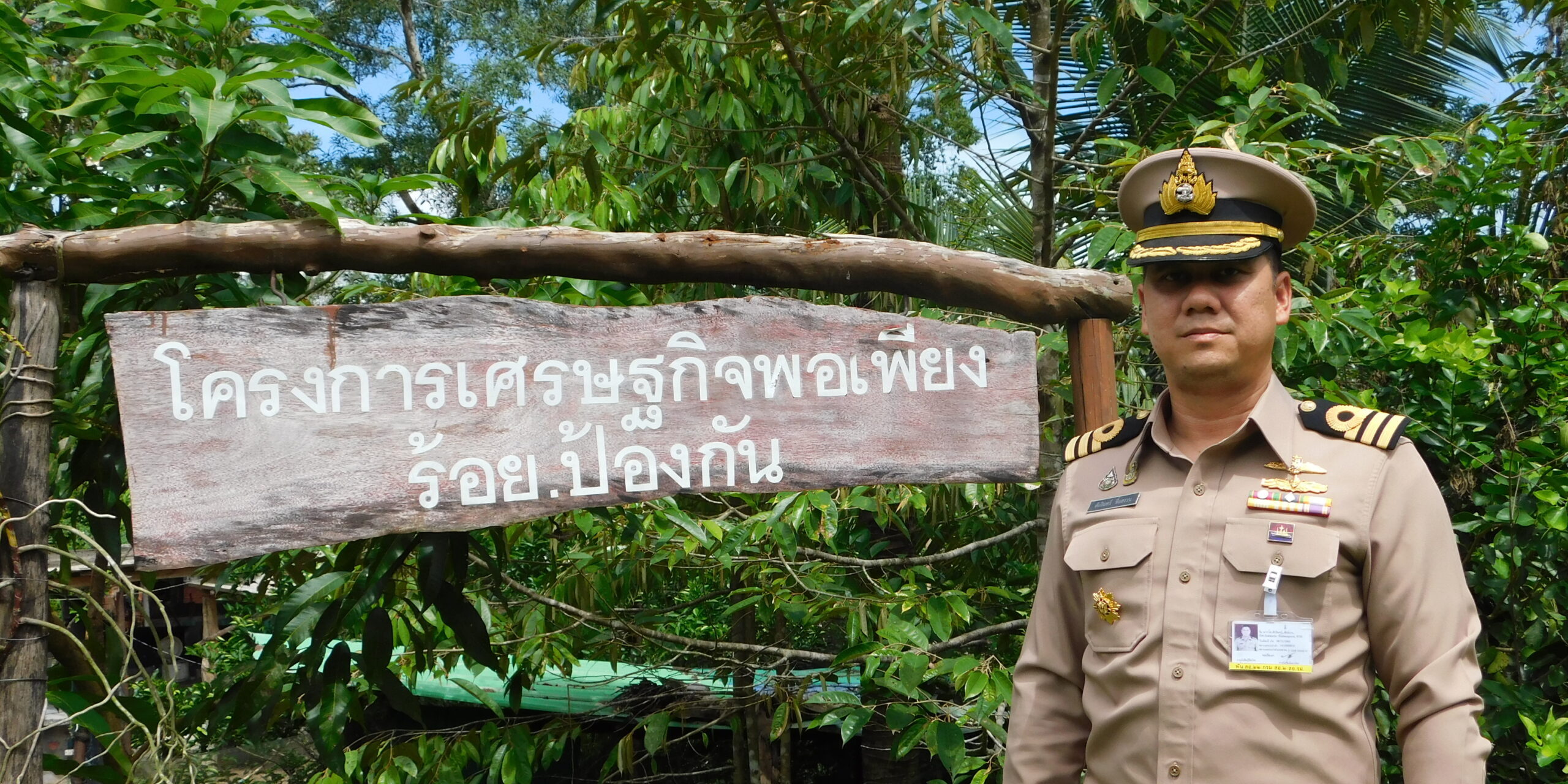 นาวาโท ศักรินทร์ ซื่อสงวน ผู้บังคับกองพันต่อสู้อากาศยานที่ 22 พาชมศูนย์การเรียนรู้เศรษฐกิจพอเพียงตามแนวพระราชดำริ ของพระบาทสมเด็จพระปรมินทรมหาภูมิพลอดุลยเดชในหลวงรัชกาลที่ 9 ซึ่งใช้พื้นที่ในหน่วยปรับทำศูนย์การเรียนรู้ในโครงการเศรฐกิจพอเพียงแบ่งเป็น 3 หน่วยย่อยตามกองร้อยต่างๆ ในกองพัน ต้องการเป็นศูนย์ส่งเสริมการเรียนรู้และทดลองปฏิบัติตามแนวพระราชดำริฯ แก่กำลังพลเพื่อเป็นอาชีพเสริมรายได้ลดรายจ่ายและเป็นการฝึกอาชีพให้แก่ทหารกองประจำการเพื่อเป็นแนวทางในการประกอบอาชีพหลังปลดประจำการ ซึ่งเน้นผลผลิตการเกษตรปลูกผักปลอดสารพิษ(ผักออร์แกนิค) เช่น ผักกาดกวางตุ้ง, แตงกวา ,พริก,มะเขือ,มะนาว,พืชผักสวนครัวรั้วกินได้ และมีบ่อเลี้ยงปลานิล,ปลาดุก,เลี้ยงไก่,เลี้ยงเป็ด จากการดำเนินการดังกล่าว ทำให้มีผลผลิตในการแบ่งปันแก่กำลังพลในสังกัดเป็นการช่วยลดค่าใช้จ่ายภายในครัวเรือนอีกทางหนึ่งและบางส่วนได้ส่งให้โรงประกอบเลี้ยงนำมาปรุงอาหารเลี้ยงกำลังพลทหารกองประจำการอีกด้วย