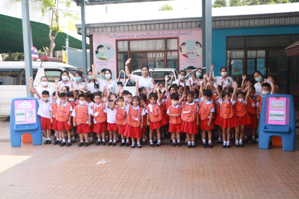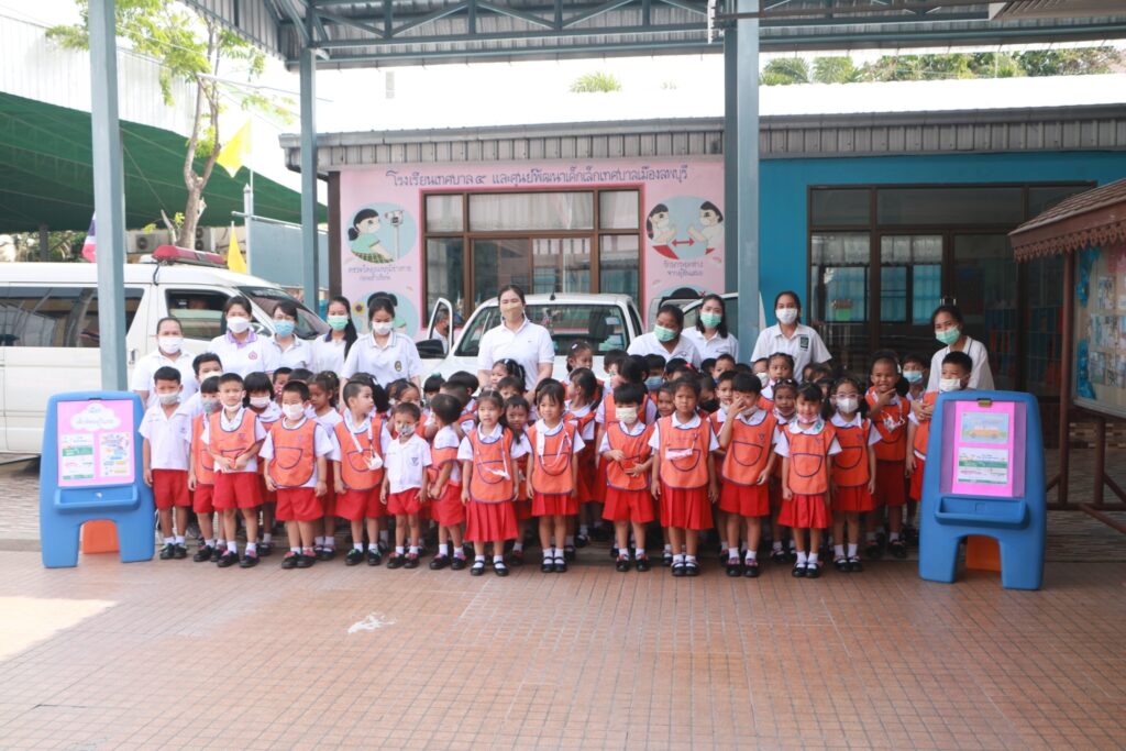 เมื่อวันที่ ๑๑ กรกฎาคม ๒๕๖๖ นางสาวสุกัญญา วงษ์ประภา รักษาราชการแทนผู้อำนวยการสถานศึกษา โรงเรียนเทศบาล ๕ ระบบสาธิตเทศบาลเมืองลพบุรี เเละ รักษาราชการแทน หัวหน้าศูนย์พัฒนาเด็กเล็กเทศบาลเมืองลพบุรี พร้อมด้วยคณะครู จัดให้มีกิจกรรม การสอนเด็ก สาธิตวิธีการเอาตัวรอดหากติดในรถ ๑. สอนเด็กนักเรียนบีบแตรขอความช่วยเหลือ โดยการบีบลากยาวเพื่อเป็นสัญญาณขอความช่วยเหลือ ๒. สอนเปิดไฟฉุกเฉิน (ไฟกระพริบ) เพื่อดึงความสนใจจากคนรอบข้างเพื่อเป็นการขอความช่วยเหลือในกรณีที่เด็กนักเรียน ติดอยู่ในรถยนต์ได้ เพราะการเปิดสัญญาณไฟฉุกเฉิน เป็นสัญญาณที่สามารถกดเปิดได้แม้ไม่ได้สตาร์ทรถก็ตาม ๓. สอนวิธีการเปิดหน้าต่างรถ เพื่อเป็นการระบายอากาศ ให้อากาศหมุนเวียน และทำการตะโกนขอความช่วยเหลือได้ การให้เด็กนักเรียนฝึกให้ลงมือทำ เพราะการเรียนรู้ที่ดีที่สุดคือการลงมือปฏิบัติจริง เพื่อให้เด็กได้เห็นภาพ เห็นเหตุการณ์ ให้เด็กนักเรียนทราบว่าตำแหน่งแตรรถยนต์ว่าอยู่ตรงไหน หรือกดตรงไหน ให้เด็กทดลองกดเพื่อให้เกิดเสียง บอกตำแหน่งที่ปลดล็อคหน้าต่างรถ กดปุ่มไฟฉุกเฉิน เป็นต้น