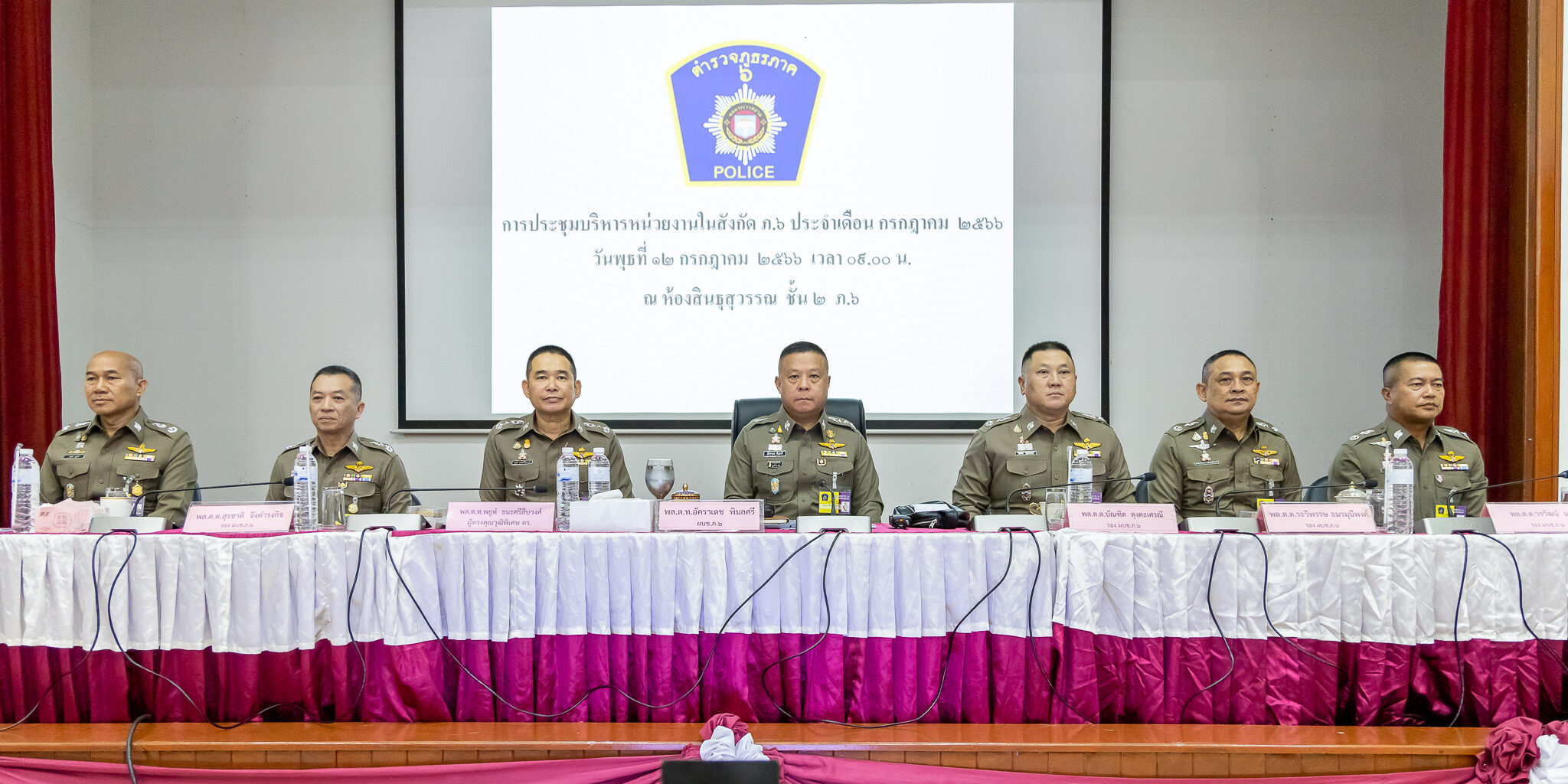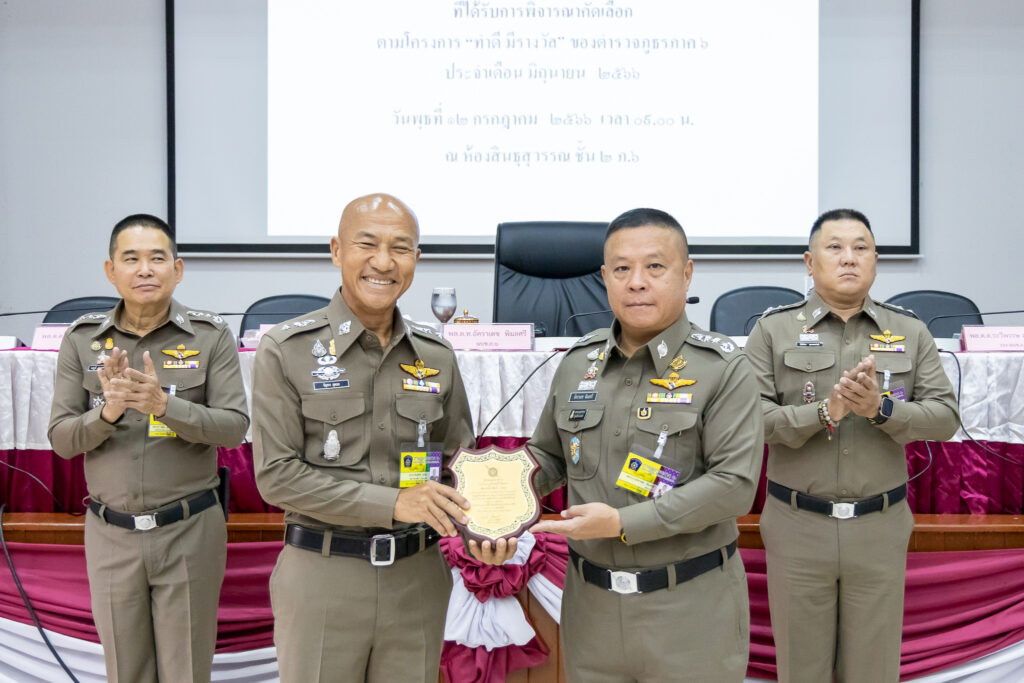 เมื่อวันที่ 12 ก.ค.2566 เวลา 09.00 น.ณ ห้องประชุมสินธุสุวรรณ ชั้น 2 ภ.6 : พล.ต.ท.อัคราเดช พิมลศรี ผบช.ภ.6 เป็นประธานในการประชุมบริหาร ภ.6 ประจำเดือนกรกฎาคม 2566 พร้อมทั้งได้มอบโล่ประกาศเกียรติคุณตามโครงการ “ทำดีมีรางวัล” ของเดือน มิ.ย.66 จำนวน 8 รางวัล