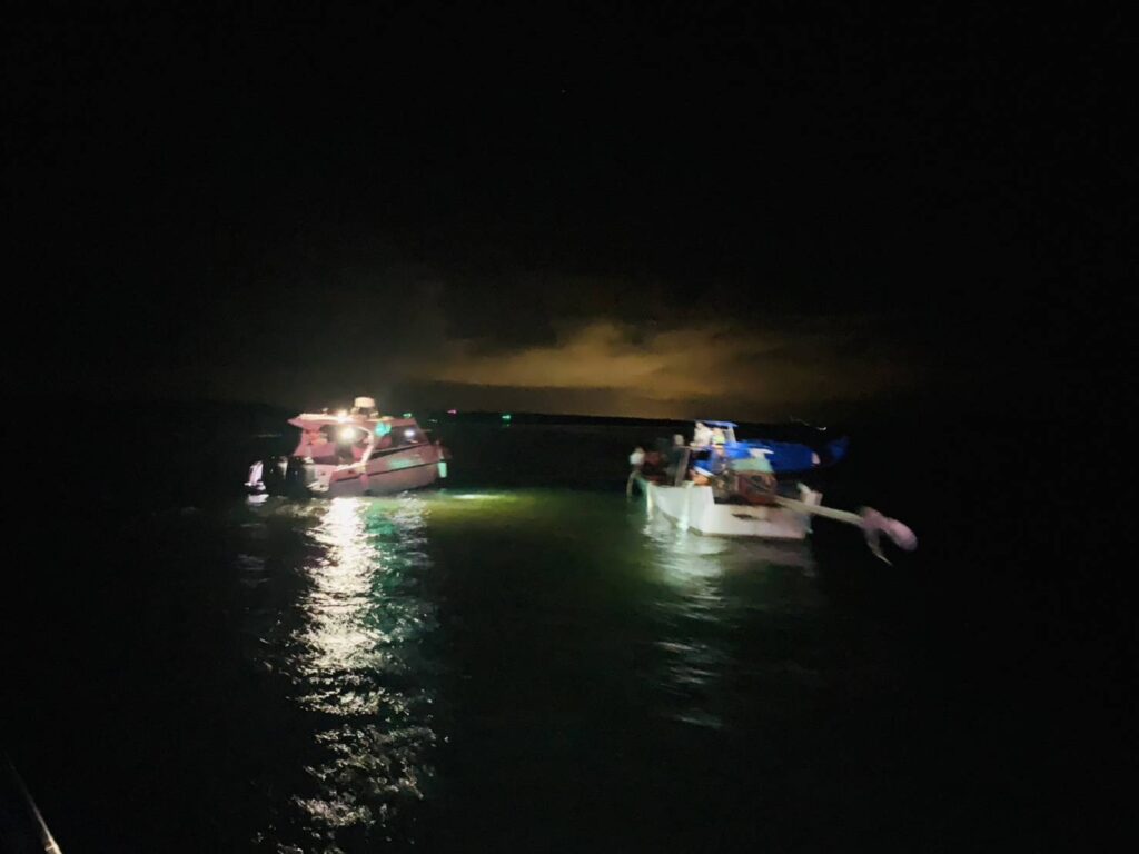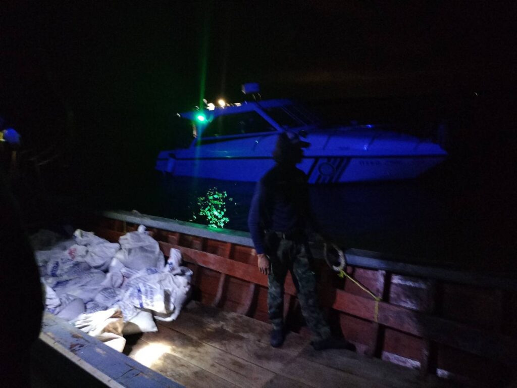 วันนี้ 14 กรกฎาคม 2566 เมื่อกลางดึกของวันที่ 13กรกฎาคม 2566 ที่ผ่านมา หน่วยเฉพาะกิจพื้นที่ตอนใต้จังหวัดสตูล ศรชล.ภาค 3 (นก.พตต.ศรชล.ภาค 3) โดย น.อ.แสนย์ไท บัวเนียม ผบ.นก.พตต.ศรชล.ภาค 3 พร้อมด้วย น.อ.รัฐพล แก้วกระจาย หน.ศคท.จว.สต.ศรชล.ภาค 3ได้บูรณาการกำลัง ประกอบด้วย ศรชล.จังหวัดสตูล, สำนักงานเจ้าท่าภูมิภาคสาขาสตูล และชุดปฏิบัติการพิเศษ นก.พตต.ศรชล.ภาค 3 ได้นำเรือ ศรชล.2906 และเรือเจ้าท่า 188 ออกตรวจพื้นที่และเรือที่มีพฤติกรรมน่าสงสัยทางทะเลบริเวณ เกาะปูยู เกาะยาว และแนวเขตชายแดนทางทะเลไทย – มาเลเซีย พบเรือหางยาวทำด้วยไม้เครื่องติดท้าย จอดลอยลำอยู่ จำนวน 2 ลำ อยู่ บริเวณระหว่างเกาะยาวและเกาะกุรับ ซึ่งอยู่ในเขตน่านน้ำภายในราชอาณาจักรไทย ซึ่งมีพฤติกรรมที่น่าสงสัย จึงได้เข้าไปตรวจสอบและแสดงตัวเป็นเจ้าหน้าที่ ขอตรวจค้นเรือทั้ง 2 ลำ โดยให้เจ้าของเรือทั้ง 2 ลำ เป็นผู้นำการตรวจค้นพร้อมกับสอบถามเจ้าของเรือทราบว่า เรือกำลังทำการพ่วงจูง เนื่องจากเรือเสีย ผลการตรวจค้นเรือลำที่เสียซึ่งมีสินค้าอยู่ในระวางเรือ พบว่าเป็นลูกพันธุ์หอยแครง ตรวจนับได้จำนวน 55 กระสอบ น้ำหนักกระสอบละ ๆ 25 กิโลกรัม รวม 1,375 กิโลกรัม มูลค่าประมาณ 400,000 บาท พร้อมลูกเรือคนไทย 2 คน ไม่มีเอกสารประจำเรือและเอกสารแสดงสินค้า