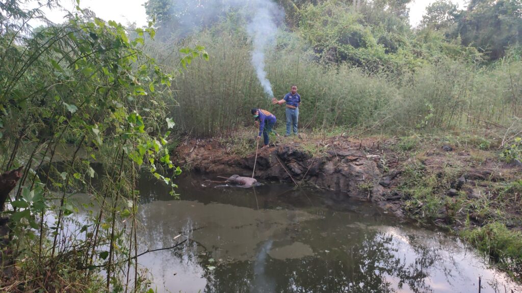 สอบถาม นางดำเนิน จูมทอง ผู้ใหญ่บ้านหมู่ 5 เผยว่า วันนี้ ลุงสุบิน แกมาหาดักปลาไหล แล้วเห็นผิดสังเกต เห็นฝูงแมลงวันบินตอมเต็มไปหมด และมีรถจอดอยู่ จึงเดินเข้าไปดู ก็พบศพขึ้นอืด ลอยคว่ำหน้าอยู่ ทีแรกก็ไม่รู้ว่าใคร ประกอบกับช่วงนี้ แถวบ้านมีงานบวช จึงต่างช่วยกันเตรียมงาน ไม่ได้พากันเอ๊ะใจว่ามีคนหาย จึงรีบมาแจ้งให้ผู้ใหญ่รับทราบ