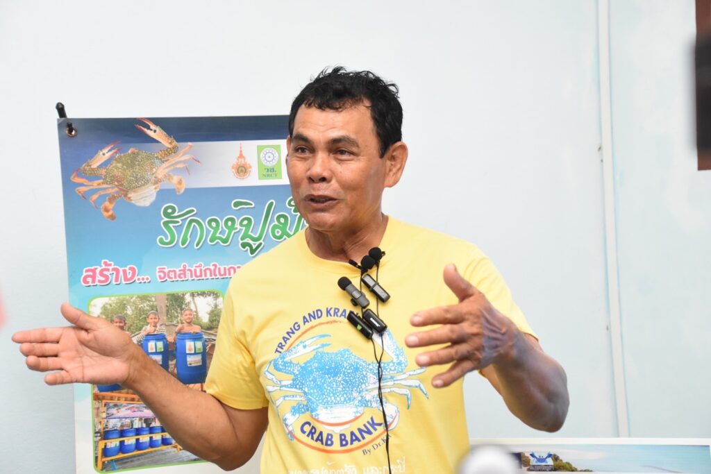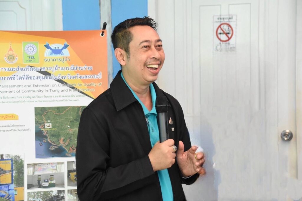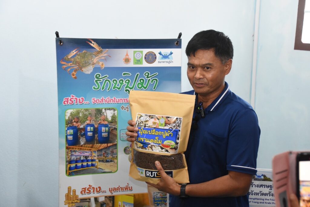 ผู้ช่วยศาสตราจารย์ ดร.วิกิจ ผินรับ หัวหน้าโครงการวิจัย จาก มหาวิทยาลัยเทคโนโลยีราชมงคลศรีวิชัย กล่าวว่า โครงการฟื้นฟูทรัพยากรปูม้าและเสริมสร้างเศรษฐกิจฐานรากในชุมชนธนาคารปูม้าพื้นที่ชายฝั่งจังหวัดตรังและกระบี่ นั้น ได้ดำเนินโครงการธนาคารปูม้าชุมชนมาอย่างต่อเนื่องตั้งแต่ พ.ศ.2561 จนถึงปัจจุบัน มีธนาคารปูม้าชุมชนจำนวน 64 แห่ง และศูนย์เรียนรู้จำนวน 13 ศูนย์ รวมทั้งสิ้นจำนวน 77 แห่ง (9 อำเภอ 54 ชุมชน) จังหวัดตรังจำนวน 4 อำเภอ ได้แก่ อำเภอสิเกา อำเภอกันตัง อำเภอปะเหลียน และอำเภอหาดสำราญ จังหวัดกระบี่จำนวน 5 อำเภอ ได้แก่ อำเภอคลองท่อม อำเภอเหนือคลอง อำเภอเกาะลันตา อำเภอเมือง และอำเภออ่าวลึก ในปีงบประมาณ 2565 ได้ดำเนินการปรับปรุงสถานที่จัดตั้งเพื่อพัฒนาธนาคารปูม้าชุมชนเป็นศูนย์เรียนรู้พร้อมทั้งติดตั้งชุดสื่อการเรียนรู้และนิทรรศการในการขับเคลื่อนธนาคารปูม้าชุมชนสู่ความยั่งยืนในพื้นที่จังหวัดตรังและกระบี่ เพิ่มจำนวน 2 แห่ง ได้แก่ ธนาคารปูม้าบ้านคลองยวน อำเภอเหนือคลอง จังหวัดกระบี่ และธนาคารปูม้าบ้านหาดยาว อำเภอกันตัง จังหวัดตรัง นอกจากนี้ได้สนับสนุนและบำรุงรักษาวัสดุและอุปกรณ์ในการทำธนาคารปูม้าแบบโรงเพาะฟักชุมชนให้กับธนาคารปูม้าและศูนย์เรียนรู้ของจังหวัดตรังและกระบี่จำนวน 77 แห่ง อาทิ ระบบน้ำ ระบบไฟ ระบบให้อากาศ ถังเพาะฟัก เป็นต้น จัดกิจกรรมวันกินปูม้าตรัง ครั้งที่ 3 เป็นระยะเวลา 2 วัน เพื่อช่วยเหลือชุมชนให้มีรายได้ และกระตุ้นเศรษฐกิจทำให้ธนาคารปูม้าชุมชนที่จำหน่ายผลิตภัณฑ์แปรรูปจากปูม้ารวมทั้งกลุ่มเกษตรกรแปรรูปผลิตภัณฑ์สินค้าประมงจังหวัดตรัง มีรายได้และยอดขายเพิ่มขึ้นจากการจำหน่ายอาหารหรือผลิตภัณฑ์แปรรูปจากปูม้าในการออกร้านจำหน่ายปูม้า ซึ่งผลสำเร็จดังกล่าวได้สร้างรายได้ให้กับชุมชน ผลิตภัณฑ์สินค้าจากเครือข่ายธนาคารปูม้าจังหวัดตรัง ได้แก่ ปูม้านึ่ง นักเก็ตปูม้า ทอดมันปูม้า จ๊อปูม้าเกาะสุกร ปูม้าจ๋า ปูม้าดองน้ำปลา น้ำพริกปูม้า และข้าวผัดปูม้า เป็นต้น สู่การผลักดันผลิตภัณฑ์แปรรูปจากปูม้าให้ได้มาตรฐานการผลิต GMP และได้รับการรับรองคุณภาพสินค้าตราสัญลักษณ์ประมงธงเขียวและเครื่องหมายฮาลาลเพื่อสร้างความมั่นใจให้กับผู้บริโภค จากกิจกรรมดังกล่าวที่จัดขึ้นมีประชาชนสนใจเข้าร่วมงานและซื้อสินค้าผลิตภัณฑ์ปูม้ามากกว่า 3,000 คน ตลอดระยะเวลา 2 วัน มีมูลค่าการซื้อขายมากกว่า 300,000 บาท ที่สร้างรายได้ให้กับชุมชนในพื้นที่เป็นอย่างมาก