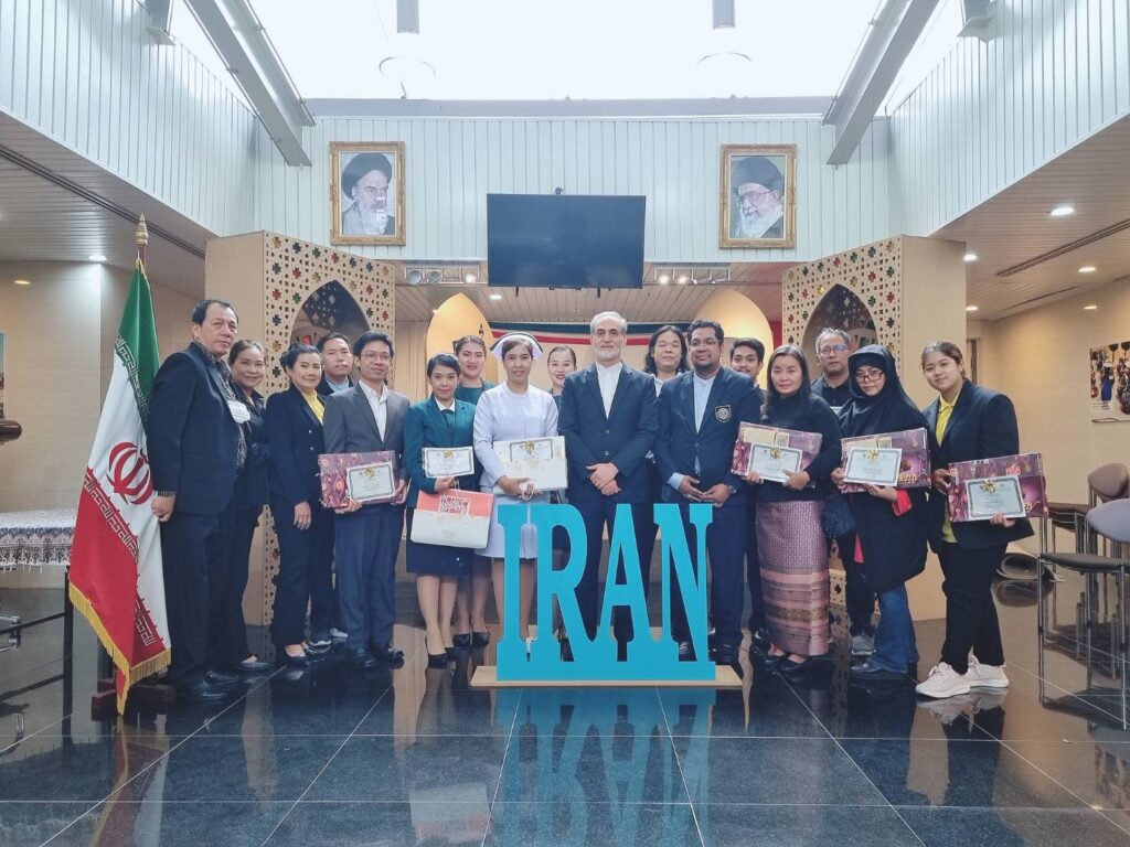 เมื่อวันที่ 10 ก.ค.2566 : นักศึกษาเรียนภาษาเปอร์เซีย ประจำศูนย์อิสลามและอิหร่านศึกษา วิทยาลัยเทคโนโลยีสยาม นำโดย ดร.ประเสริฐ สุขศาสน์กวิน คณบดีคณะรัฐประศาสนศาสตร์/ผู้อำนวยการศูนย์อิสลามและอิหร่านศึกษา วิทยาลัยเทคโนโลยีสยาม พร้อมกับนายไกรเดช บุนนาค ที่ปรึกษาศูนย์อิสลามและอิหร่านศึกษา ร่วมพิธีมอบเกียรติบัตรให้นักศึกษาที่จบคอร์สภาษาเปอร์เซีย โดย ฯพณฯเอกอัครราชทูต สาธารณรัฐอิสลามแห่งอิหร่าน ประจำกรุงเทพฯ