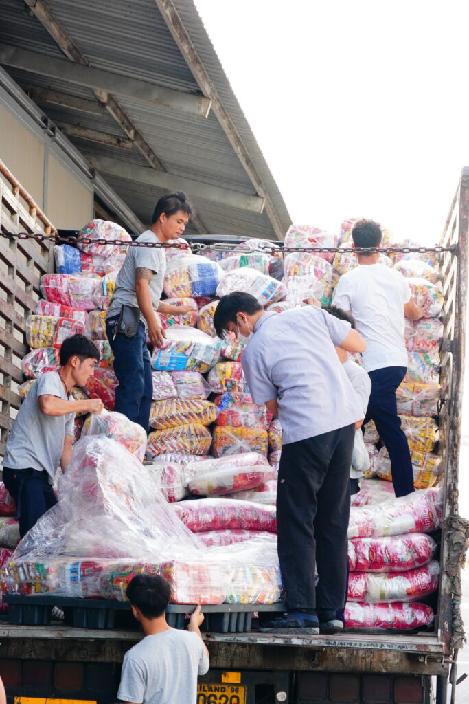 สำหรับข้าวสารอาหารแห้งที่ส่งไปช่วยเหลือ ประกอบด้วย 1. บะหมี่กึ่งสำเร็จรูป 40,000 ซอง 2. ข้าวสาร 6,250 กิโลกรัม 3.ปลากระป๋อง 3,000 กระป๋อง 4. วุ้นเส้นคละชนิด 100 ถุง 5.ขนมกรอบ 5,000 ซอง 6.กาแฟ 3 in 1 10,000 ซอง 7. ไมโล 3 in 1 10,000 ซอง 8. เส้นหมี่อบแห้ง 5,000 ซอง ครั้งนี้ส่งมอบไปยัง คณะสงฆ์ วัด โรงเรียน ชุมชน หน่วยทหาร จำนวน 30 แห่ง อาทิ วัดโคกเคียน, วัดทุ่งกง, วัดราษฎร์วิริยาราม, ชุมชนโคกป่าคา, ชุมชนเชิงเขา, ชุมชนโคกเนียง, โรงเรียนรักไทย, โรงเรียนสุคิริน, โรงเรียนภูเขาทอง ฯลฯ