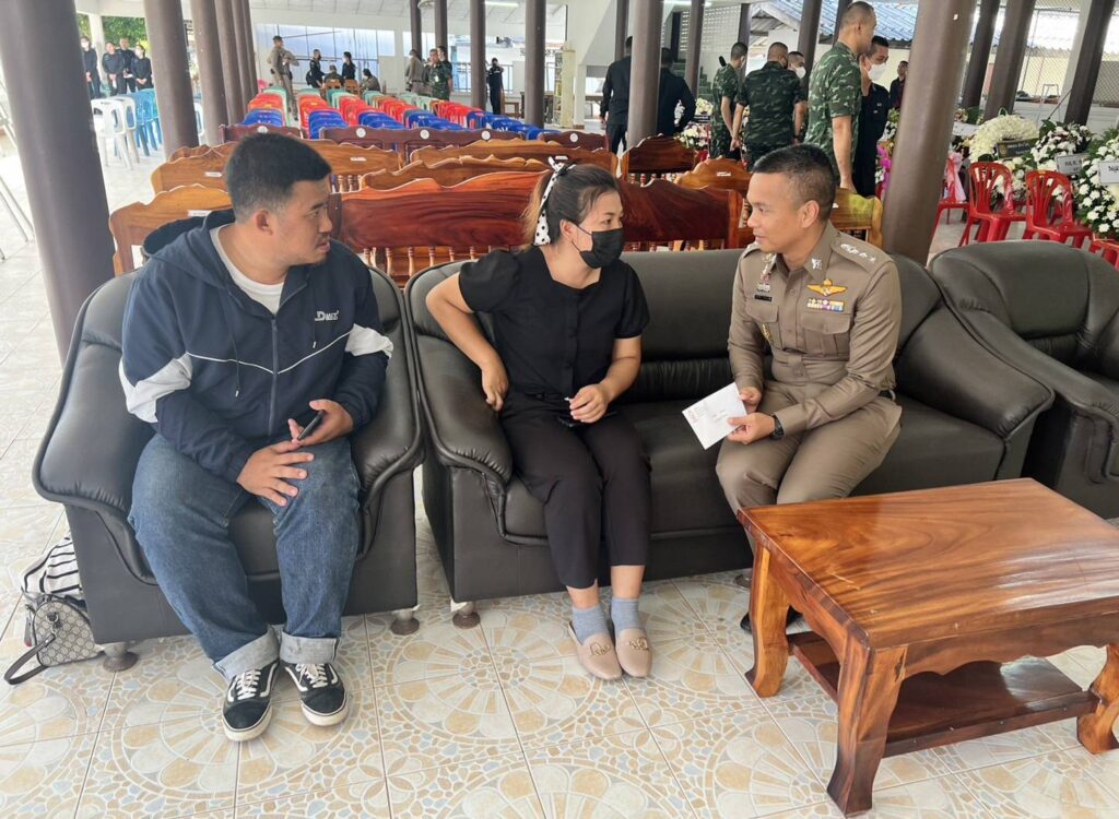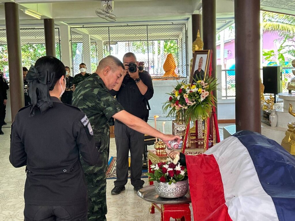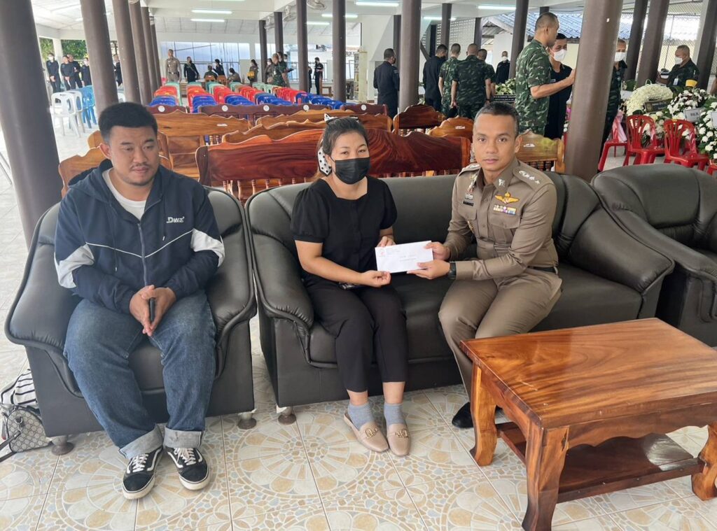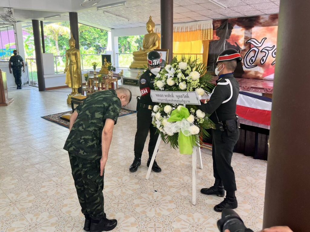 ได้เข้าร่วมเคารพศพ อส.ทพ.วันชัย มุหาสุขไพศาล ชป.พิทักษ์พื้นที่ ชป.ร้อย ทพ.3009 ฉก.ทพ.30 ซึ่งเสียชีวิตจากเหตุผู้ก่อการร้ายลอบวางระเบิดบริเวณบ้านแบแน ต.บาเจาะ อ.บันนังสตา จ.ยะลา เมื่อวันที่ 15 ก.ค.2566 เวลา 11.50 น.ที่ผ่านมา จากนั้นได้มอบเงินช่วยเหลือ แก่ญาติ อส.ทพ.วันชัย มุหาสุขไพศาล ทหารพรานกล้า พร้อมพูดคุยให้กำลังใจแก่ครอบครัวผู้เสียชีวิต เป็นไปตามโครงการ”ส่งเสริมคนดี มูลนิธิพระราหู”