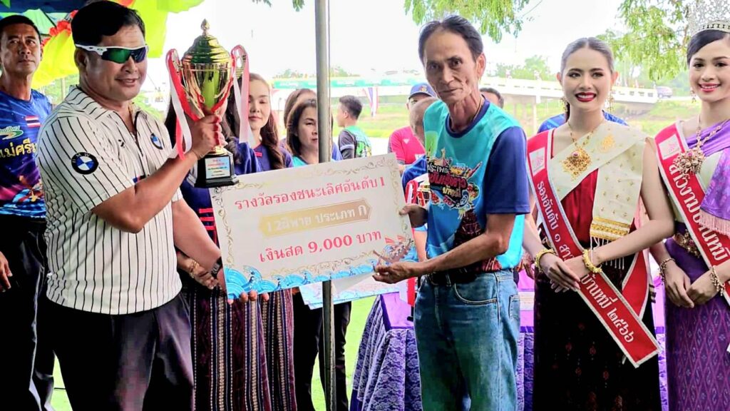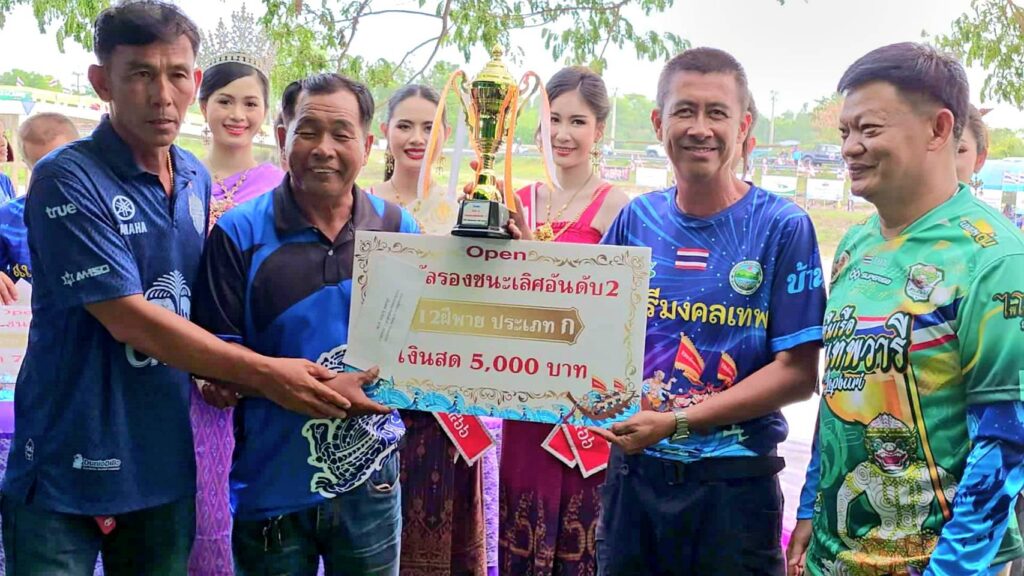 สำหรับประเภทถ้วย ข. เรือยาว 12 ฝีพาย “เรือพรพระปราการวัดกำแพง” จาก ต.บ้านชี เรือเจ้าถิ่น สามาเอาชนะ “เรือสิงห์บางพาน” จาก จังหวัดสิงห์บุรี ไปได้ ได้ถ้วยรางวัลจากบริษัท ไทยเบฟเวอเรจ จํากัด (มหาชน) พร้อมเงินรางวัล ไปครอง