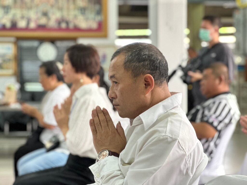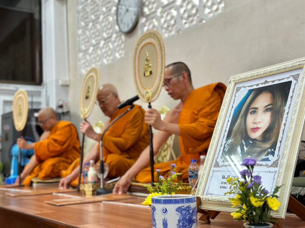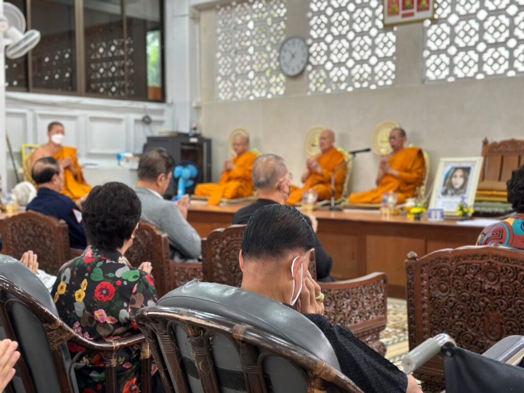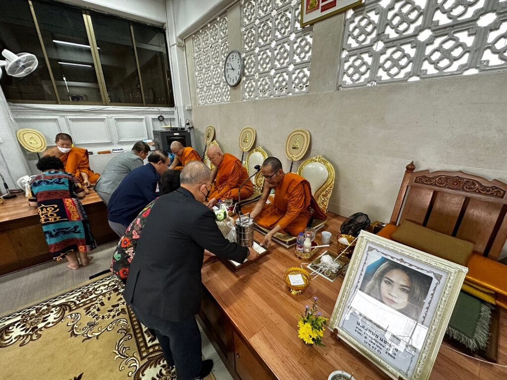 ว่าที่พันตรี กรพด รุ่งหิรัญวัฒน์ นายกสมาคมศิษย์เก่านักศึกษาวิชาทหาร, เลขาธิการมูลนิธิส่งเสริมการศึกษาและวัฒนธรรมเอเชีย สมาชิก มูลนิธิฯ ร่วมกันทำบุญ บำเพ็ญกุศล 100 วัน นางสาว เหม่ย แซ่หยิ่ง ผู้ร่วมก่อตั้ง และ อดีตผู้อำนวยการ มูลนิธิส่งเสริมการศึกษาและวัฒนธรรมเอเชีย ณ วัดพระราม 9 กาญจนาภิเษก กรุงเทพฯ