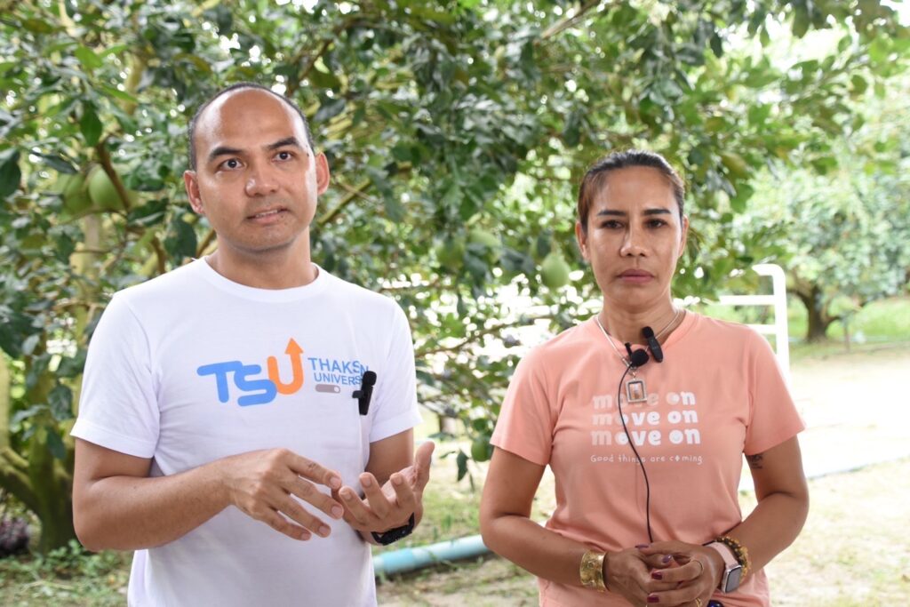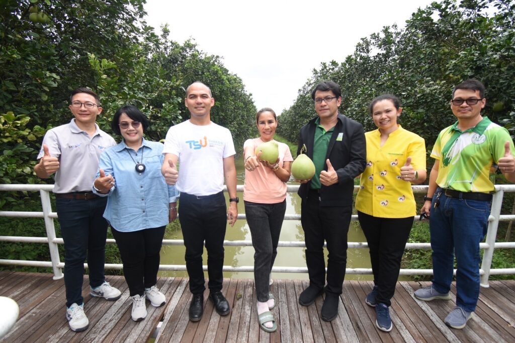 วันที่ 17 กรกฎาคม 2566 สำนักงานการวิจัยแห่งชาติ (วช.) กระทรวงการอุดมศึกษา วิทยาศาสตร์ วิจัยและนวัตกรรม โดย ดร.วิภารัตน์ ดีอ่อง ผู้อำนวยการสำนักงานการวิจัยแห่งชาติ (ผวช.) มอบหมายให้ กลุ่มสารนิเทศและ ประชาสัมพันธ์ (วช.) นำคณะสื่อมวลชนลงพื้นที่จังหวัดนครศรีธรรมราช เยี่ยมชมโครงการวิจัย เรื่อง “การจัดการความรู้และถ่ายทอดเทคโนโลยีที่เหมาะสมเพื่อยกระดับมาตรฐานและรักษาคุณภาพสู่ชุมชนต้นแบบการผลิตส้มโอทับทิมสยามเชิงพาณิชย์” โดยมี รศ.ดร.สมัคร แก้วสุกแสง รองอธิการบดีฝ่ายวิจัยและนวัตกรรม มหาวิทยาลัยทักษิณ เป็นหัวหน้าโครงการฯ เพื่อนำองค์ความรู้จากการวิจัยมาจัดการความรู้แบบครบวงจร พร้อมนำเทคโนโลยีและนวัตกรรมที่เหมาะสมมาผลักดันชุมชนต้นแบบการผลิตและการจัดการหลังเก็บเกี่ยวของส้มโอทับทิมสยามที่มีคุณภาพสูงที่ปลูกในเชิงพาณิชย์ โดยมี รศ.ดร.นริศ ท้าวจันทร์ แห่งมหาวิทยาลัยสงขลานครินทร์ นางปฏิมา ยิ่งขจร นักวิชาการส่งเสริมการเกษตรชำนาญการ รักษาราชการแทนเกษตรอำเภอปากพนัง และเกษตรกรในพื้นที่ ร่วมรับฟังการบรรยายและเยี่ยมชมโครงการวิจัยฯ ณ กลุ่มวิสาหกิจชุมชนแปลงใหญ่ส้มโอทับทิมสยาม ไร่ทรัพย์สุวรรณ และสวนส้มโอ ป้าแดง-ลุงแอ๊ด อำเภอปากพนัง จังหวัดนครศรีธรรมราช