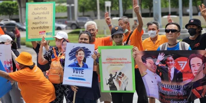 วันนี้ เมื่อเวลา 11.00 น ที่ศาลรัฐธรรมนูญ กลุ่ม 24 มิถุนาประชาธิปไตยและคณะรณรงค์รัฐธรรมนูญประชาชน (ครช.) ประมาณ 20 คน นำโดยนายสมยศ พฤกษาเกษมสุข พร้อมมวลชน ชุมนุมหน้าศาลรัฐธรรมนูญ เพื่อคัดค้านศาลรัฐธรรมนูญวินิจฉัยยุบพรรคก้าวไกล กรณีสำนักงานคณะกรรมการการเลือกตั้ง (กกต.) ยื่นคำร้องต่อศาลรัฐธรรมนูญ ขอให้ สมาชิกภาพ ส.ส.ของนายพิธา ลิ้มเจริญรัตน์ ส.ส.บัญชีรายชื่อ หัวหน้าพรรคและแคนดิเดตนายกรัฐมนตรี พรรคก้าวไกลสิ้นสุดลงตามมาตรา 82 และ รับคำร้องกรณีพรรคก้าวไกลแก้ไขมาตรา 112 เป็นการล้มล้างการปกครองอันจะมีผลต่อการยุบพรรคก้าวไกล ทั้งนี้มีมวลชนจำนวนหนึ่งทยอยเดินทางมา ท่ามกลางการดูแลของเจ้าหน้าที่ตำรวจ และกองร้อยน้ำหวาน หรือตำรวจควบคุมฝูงชนหญิง ที่มีการวางกำลังดูแลพื้นที่บริเวณโดยรอบอาคารราชบุรีดิเรกฤทธิ์ หรืออาคาร A โดยมีการนำแผงเหล็กมากั้น บริเวณด้านหน้าห่างจากตัวอาคาร ประมาณ 50 เมตร โดยมีเจ้าหน้าที่ศาลฯ เป็นผู้รับหนังสือร้องเรียน
