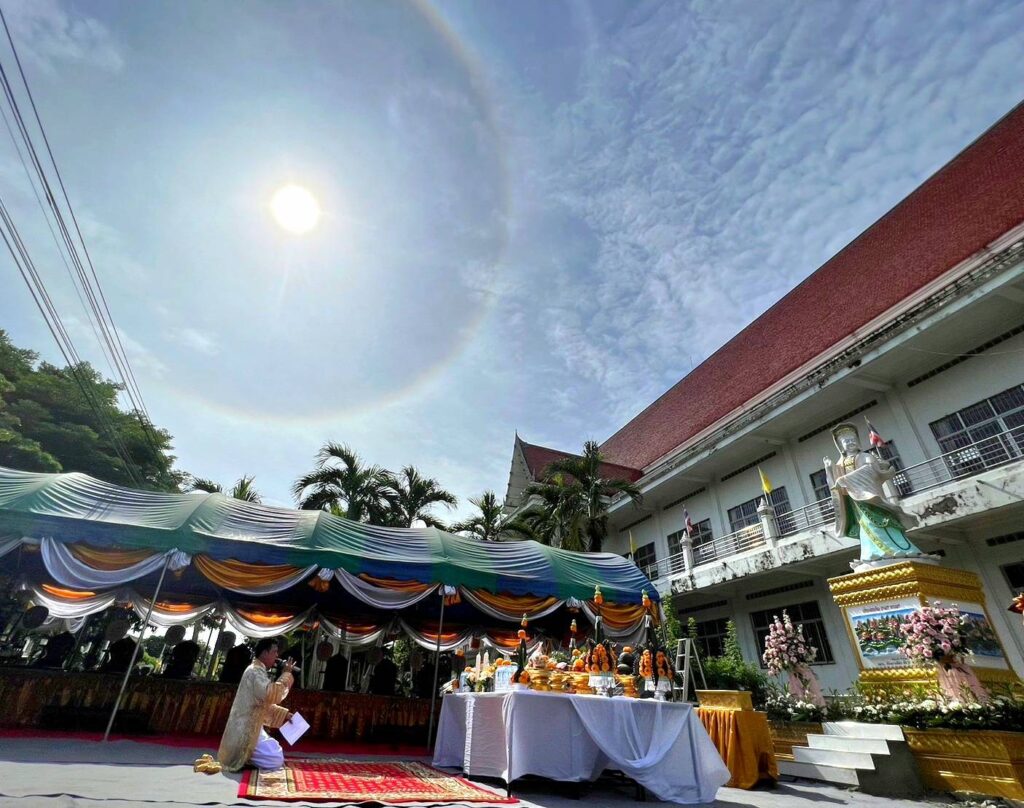 ภายในพิธีอันเป็นมหามงคล ตั้งแต่ช่วงเช้ามีพิธีบวงสรวงเทวดาฟ้าดิน จนถึงพิธีเบิกเนตรองค์เจ้าแม่กวนอิม ได้เกิดปรากฏการณ์มหัศจรรย์พระอาทิตย์ทรงกรดเหนือท้องฟ้า กลางปริมณฑลพิธี สร้างความแตกตื่นให้กับผู้ร่วมพิธี ซึ่งปรากฏเหตุอัศจรรย์ตามธรรมชาติครั้งนี้ให้เป็นที่ประจักษ์สายตาแก่ทุกคน ซึ่งได้รับรู้ในเจตจำนงค์อันบริสุทธิ์ของคณะผู้จัดสร้างและสาธุชนทั้งหลาย ที่มีจิตศรัทธามาร่วมงานในครั้งนี้ หลังการประกอบพิธีแล้วเสร็จ พราหมณ์พิธีได้จุดประทัดถวายสิ่งศักดิ์สิทธิ์ ในการประกอบพิธีเบิกเนตรองค์เจ้าแม่กวนอิม โดยเลขหางผ้าประทัด ซึ่งตรงกับตัวเลข 372 – 69