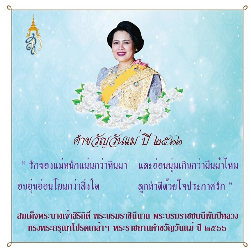วันนี้ (18 ก.ค.66) เพจเฟชบุ๊ก “สภาสังคมสงเคราะห์แห่งประเทศไทย” เผยแพร่ข้อความว่า สมเด็จพระนางเจ้าสิริกิติ์ พระบรมราชินีนาถ พระบรมราชชนนีพันปีหลวง ทรงพระกรุณาโปรดเกล้าฯ พระราชทานคำขวัญวันแม่ ปี 2566 เนื่องในโอกาสวันแม่แห่งชาติ ประจำปี 2566 ว่า