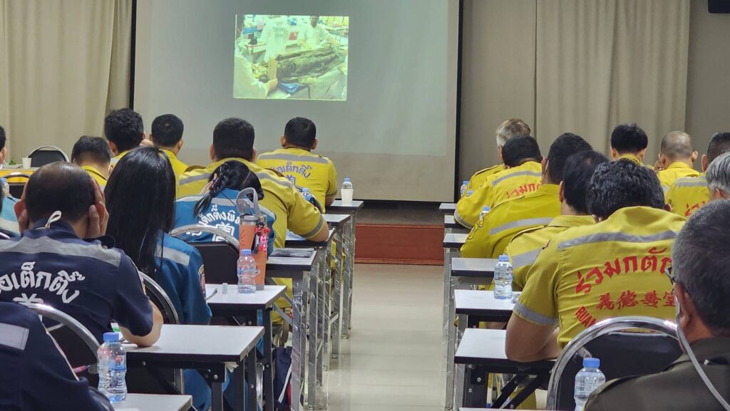 ทั้งนี้ ผู้เข้ารับการอบรม เป็นเจ้าหน้าที่มูลนิธิ อาสาสมัครมูลนิธิร่วมกตัญญู และป่อเต็กติึ๊งรวมจำนวน 84 นาย โดยผู้เข้ารับการอบรมได้รับความรู้เกี่ยวกับการจัดการศพกรณีเกิดจากภัยพิบัติ,การถ่ายภาพสถานที่เกิดเหตุ และการสนับสนุนช่วยแพทย์ชันสูตรพลิกศพ ณ สถานที่เกิดเหตุ