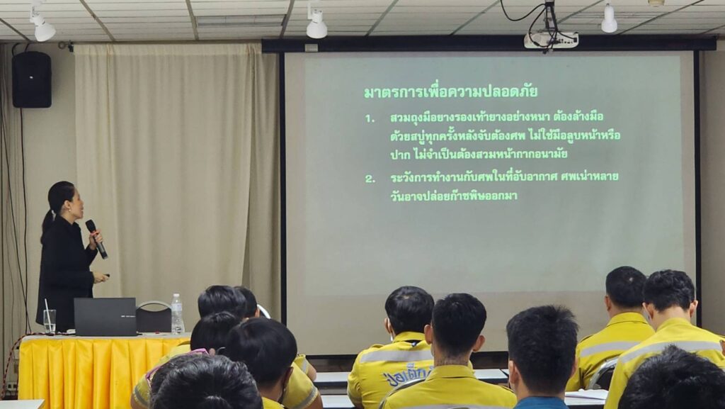 โดยไม่ทำลายวัตถุพยานในที่เกิดเหตุ และรู้จักการป้องกันตนเองจากโรคระบาดในที่เกิดเหตุ รวมทั้งเพื่อให้เจ้าหน้าที่มูลนิธิสามารถเป็นผู้ช่วยเหลือพนักงานเจ้าหน้าที่ตามกฎหมายได้ ตลอดจนเพื่อเป็นการสร้างความสัมพันธ์ที่ดีในการประสานการปฏิบัติงานร่วมกันระหว่างเจ้าพนักงานผู้ปฏิบัติ และเจ้าหน้าที่มูลนิธิให้เป็นไปในแนวทางเดียวกัน