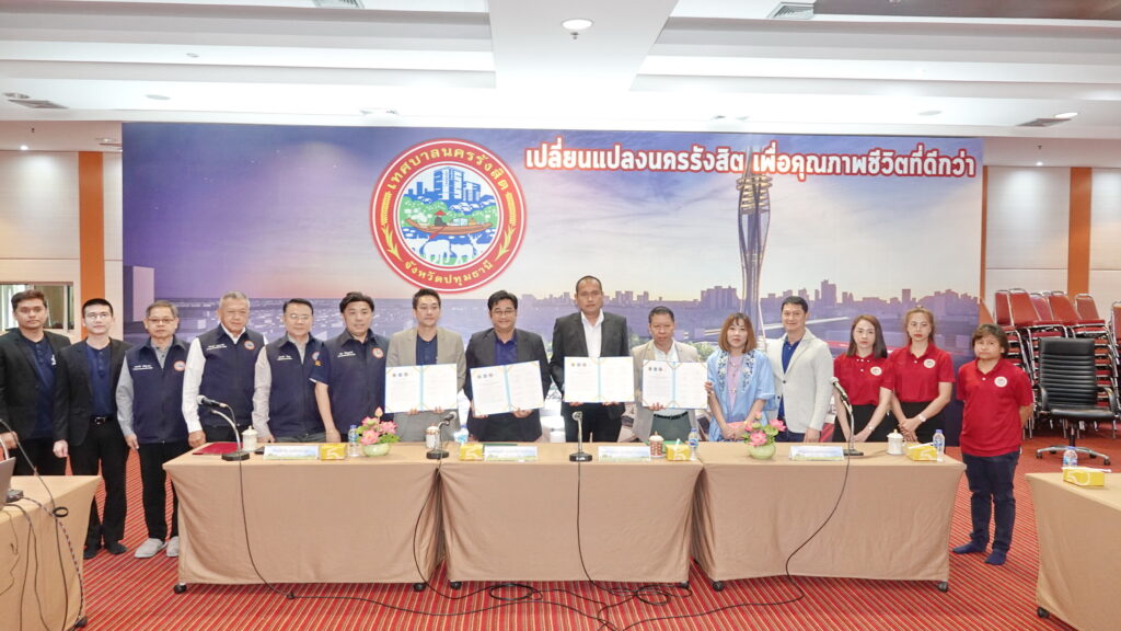 วันที่ 19 กรกฎาคม 2566 ที่เทศบาลนครรังสิต ตำบลประชาธิปัตย์ อำเภอธัญบุรี จังหวัดปทุมธานี องค์การบริหารส่วนจังหวัดปทุมธานี เทศบาลนครรังสิต สมาคมกีฬาอีสปอร์ตจังหวัดปทุมธานี และศูนย์การค้า ฟิวเจอร์พาร์ค รังสิต ร่วมลงนามบันทึกข้อตกลงการให้ความร่วมมือพัฒนาบุคลากรกีฬาอีสปอร์ต ตามวัตถุประสงค์หลักของสมาคมที่มุ่งเน้นพัฒนาศักยภาพของบุคลากรและให้ความรู้กับผู้ที่มีความสนใจในเรื่องของวงการกีฬาอีสปอร์ต ทั้งในจังหวัดปทุมธานีและนอกพื้นที่ และร่วมมือจัดแข่งขัน PATHUM THANI OF GLORY : ROV AMATEUR LEAGUE ประจำปี 2566 ณ Alive Park Hall ศูนย์การค้าฟิวเจอร์พาร์ค รังสิต อำเภอธัญบุรี จังหวัดปทุมธานี ระหว่างวันที่ 22 – 23 กรกฎาคม 2566 ชิงถ้วยพระราชทานจากพระบาทสมเด็จพระปรเมนทรรามาธิบดีศรีสินทรมหาวชิราลงกรณ พระวชิรเกล้าเจ้าอยู่หัว ถ้วยแรกในประวัติศาสตร์ไทย