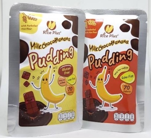 ส่วน ผลิตภัณฑ์พุดดิ้งกล้วยหอมรสช็อกโกแลตจากแป้งข้าวนึ่ง สืบเนื่องจากข้าวนึ่งเป็นอาหารสุขภาพที่มีคุณค่าทางโภชนาการสูง แต่มีกลิ่นและรสที่ไม่เป็นที่ยอมรับของผู้บริโภค ผู้วิจัยจึงมีความสนใจในการศึกษาคุณสมบัติของแป้งข้าวนึ่งเพื่อใช้ทดแทนการใช้แป้งสาลีในผลิตภัณฑ์พุดดิ้ง โดยทำการคัดเลือกสูตรพื้นฐานผลิตภัณฑ์ พุดดิ้งกล้วยหอมรสช็อกโกแลต แล้วพัฒนาเป็นผลิตภัณฑ์พุดดิ้งกล้วยหอมรสช็อกโกแลตจากแป้งข้าวนึ่ง เพื่อเพิ่มมูลค่าและสร้างทางเลือกแก่ผู้ประกอบการในการนำไปต่อยอดขยายผลในเชิงพาณิชย์ต่อไป
