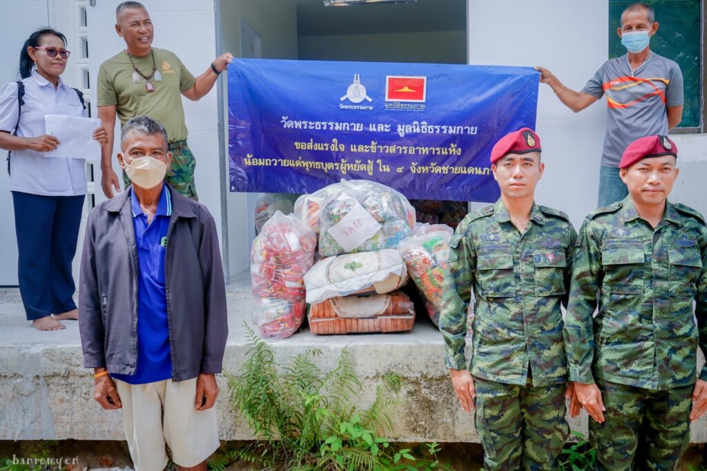 โอกาสนี้ นางสาวบุญจันทร์ บ่อไทย กรรมการมูลนิธิธรรมกาย ได้กล่าวถึงความเป็นมาของโครงการนี้ว่า “เนื่องจากเกิดเหตุสถานการณ์ความไม่สงบในพื้นที่ ทำให้วัด ชุมชน สถานศึกษา เกิดความหวาดระแวง ต่อสถานการณ์ที่เกิดขึ้น เป็นเหตุให้พระในแต่ละวัดไม่สามารถออกไปบิณฑบาตได้ อีกทั้งชุมชนต่าง ๆ ไม่สามารถไปประกอบสัมมาอาชีพได้ตามปกติ วัดพระธรรมกาย และมูลนิธิธรรมกาย จึงได้ส่งมอบข้าวสารอาหารแห้งกว่า 80,000 รายการ รวมน้ำหนัก 1,600 กิโลกรัม (1 คันรถสิบล้อ) เพื่อช่วยเหลือคณะสงฆ์ คณะครู ทหาร ตำรวจผู้ปฏิบัติหน้าที่เสี่ยงภัยในจังหวัดนราธิวาส โดยมุ่งหวังที่จะเพิ่มขวัญและกำลังใจให้แก่พี่น้องชาวไทยพุทธในพื้นที่ด้วย”