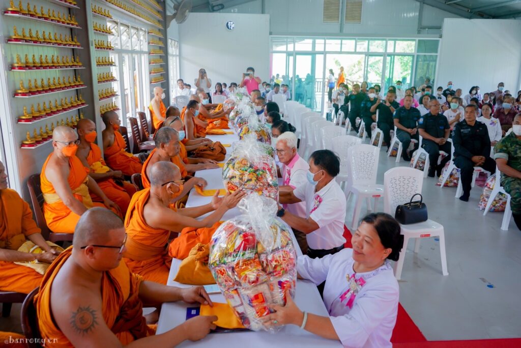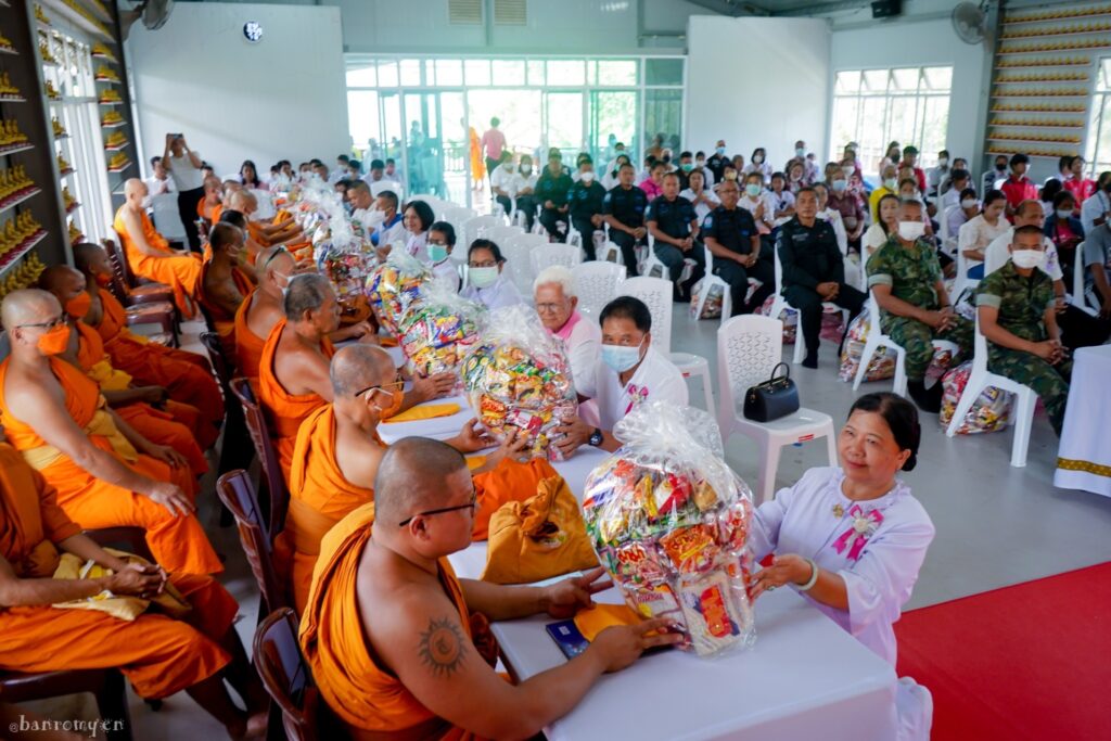 ภายในพิธีได้รับความเมตตาจากพระครูวรปัญญาประยุต เจ้าคณะอำเภอรือเสาะ-ศรีสาคร เจ้าอาวาสวัดราษฎร์สโมสร เป็นประธานสงฆ์ พร้อมด้วย เจ้าคณะอำเภอเมือง เจ้าคณะอำเภอแว้ง-สุคิริน เจ้าคณะอำเภอตากใบ เจ้าคณะอำเภอยี่งอ-บาเจาะ เจ้าคณะอำเภอระแงะ-เจาะไอร้อง เจ้าคณะอำเภอเมือง และเจ้าคณะตำบล และพระสังฆาธิการในจังหวัดนราธิวาส มารับถวายอาหารแห้งครั้งนี้ ตลอดจนผู้แทนหน่วยราชการประกอบด้วย นายภูมิศักดิ์ ชูเย็น ผู้อำนวยการสำนักงานพระพุทธศาสนาจังหวัดนราธิวาส ดร.สุชาติ ถาวระ ผู้อำนวยการศูนย์วิทยาศาสตร์เพื่อการศึกษานราธิวาส นางพรทิพย์ น้อยสร้าง นักวิชาการวัฒนธรรมชำนาญการ สิบเอกเกรียงศักดิ์ กังสวรณ์ ผู้แทนหัวหน้าบ้านพักเด็กและครอบครัว ร่วมในการน้อมถวายด้วย