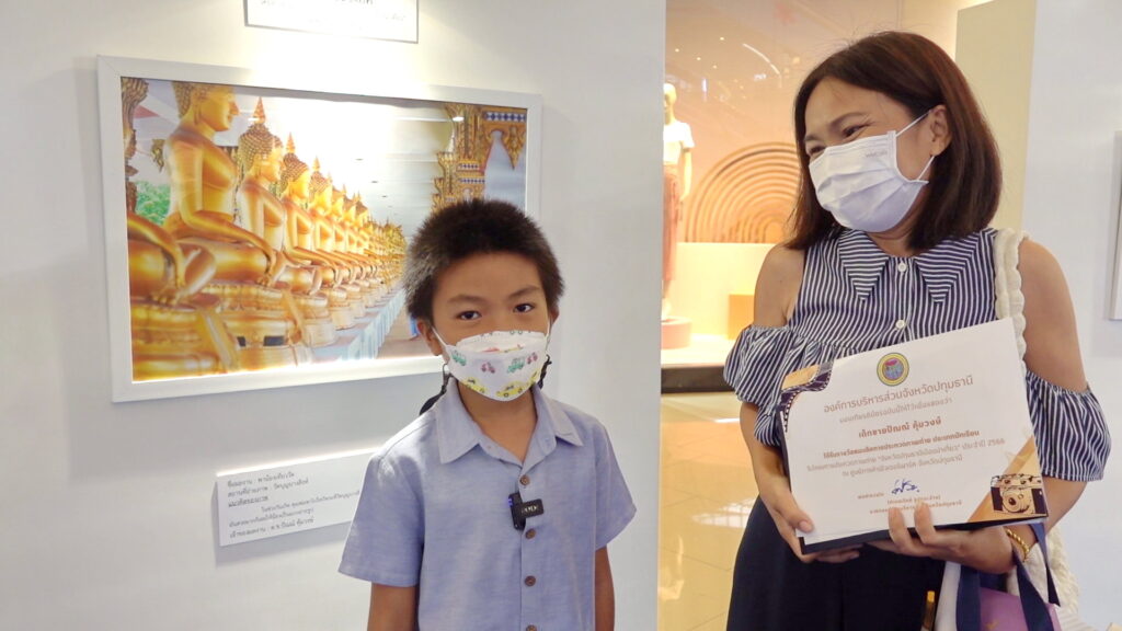 ด.ช.ปัณณ์ คุ้มวงษ์ ผู้ชนะการประกวดภาพถ่ายประเภทนักเรียน กล่าวว่า วันนี้ไปถ่ายภาพเป็นวันเกิดคุณพ่อจึงได้เดินทางไปไหว้พระที่วัด ได้เห็นว่ามุมพระพุทธรูปที่นั่งเรียงกันหลายองค์จึงให้น้องสาวไปเป็นแบบถ่ายภาพเพื่อส่งภาพเข้าประกวด วันนี้รู้สึกดีใจมากที่ได้รับรางวัลที่หนึ่ง เพราะเป็นภาพถ่ายที่เราได้ถ่ายด้วยตัวเราเอง ฝากประชาชนทั่วไปให้มาเที่ยวเมืองปทุมธานีเพราะว่ามีวัดสวย ๆ เยอะ.
