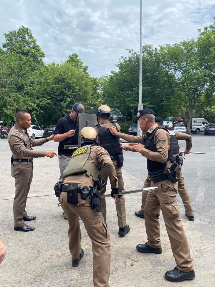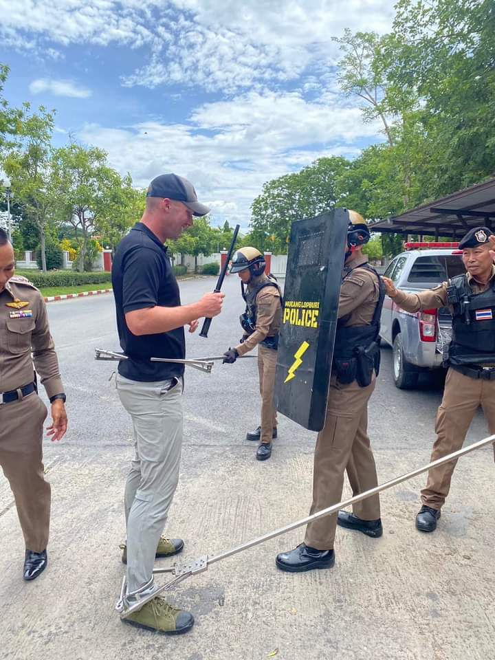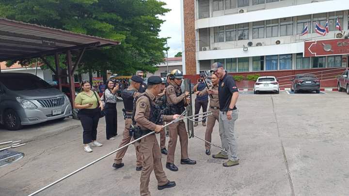 โดยมี พ.ต.อ.รักศักดิ์ เมฆจินดา ผกก.สภ.เมืองลพบุรี เป็นผู้สาธิต ถึงวิธีการใช้ไม้ง่ามของเจ้าหน้าที่ตำรวจ และได้พาชมถึงการทำงานของเจ้าหน้าที่ตำรวจ บนสถานีตำรวจภูธรเมืองลพบุรีอีกด้วย