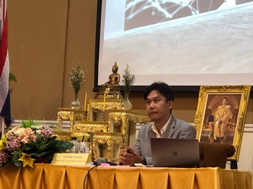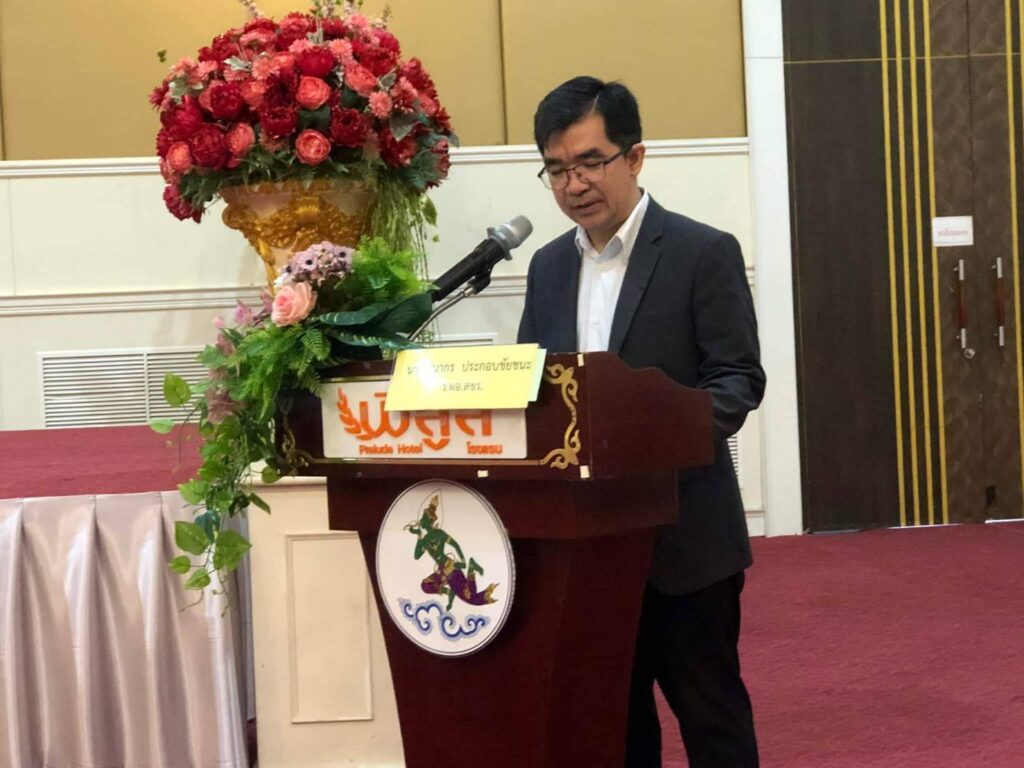 กล่าวรายงาน นายคณากร ประกอบชัยชนะ รักษาการผู้อำนวยการส่วนข่าวและรายการภูมิภาค-กรมประชาสัมพันธ์กับการประชาสัมพันธ์ อป.มช.