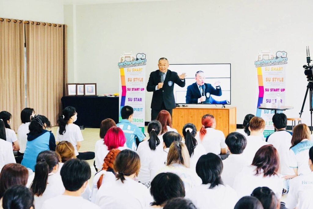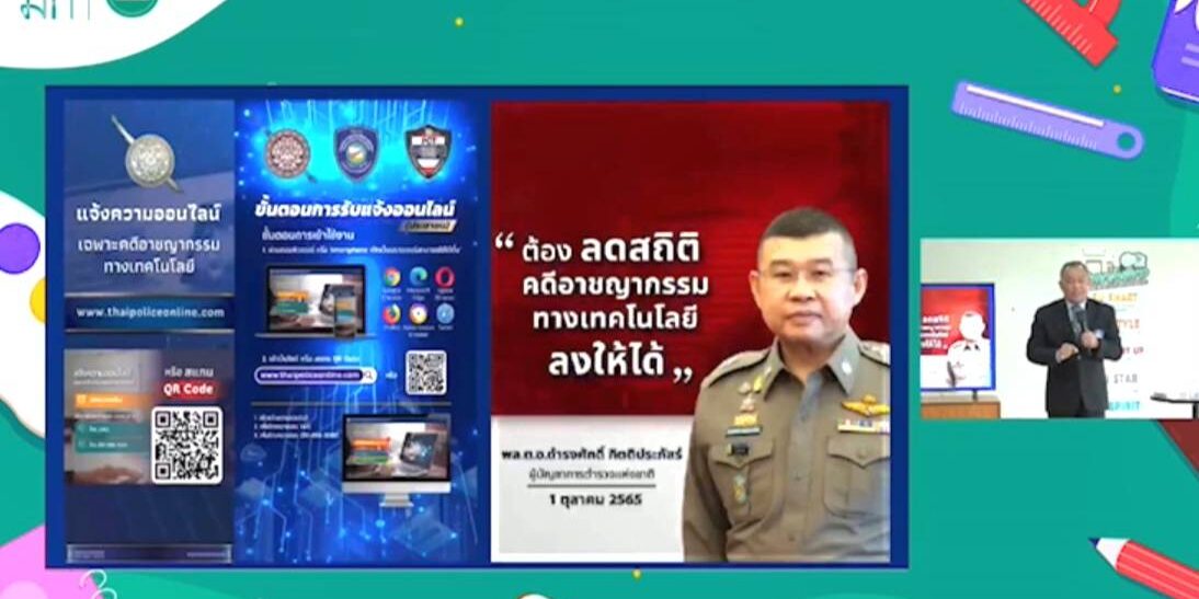เมื่อวันที่ 21 ก.ค.2566 เวลา 09.30 น.ที่ผ่านมา ณ ห้องประชุม มหาวิทยาลัยศิลปากร วิทยาเขตพระราชวังสนามจันทร์ จังหวัดนครปฐม โดย พล.ต.ต.ชัชปัณฑกาณฑ์ คล้ายคลึง ผบก.สอท.1 ได้รับเชิญให้เป็นวิทยากรบรรยายพิเศษ ให้กับนักศึกษามหาวิทยาลัยศิลปากร นครปฐม จำนวน 400 คน โดยบรรยายในหัวข้อ “วัคซีนไซเบอร์” พร้อมทั้งได้เชิญชวนนักศึกษาร่วมทำเเบบทดสอบวัคซีนไซเบอร์ 40 ข้อตามนโยบายของท่าน ผบ.ตร.เเละท่านผบช.สอท.