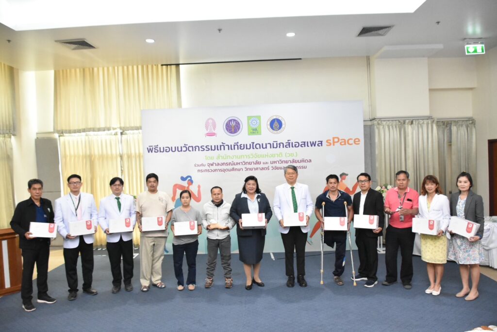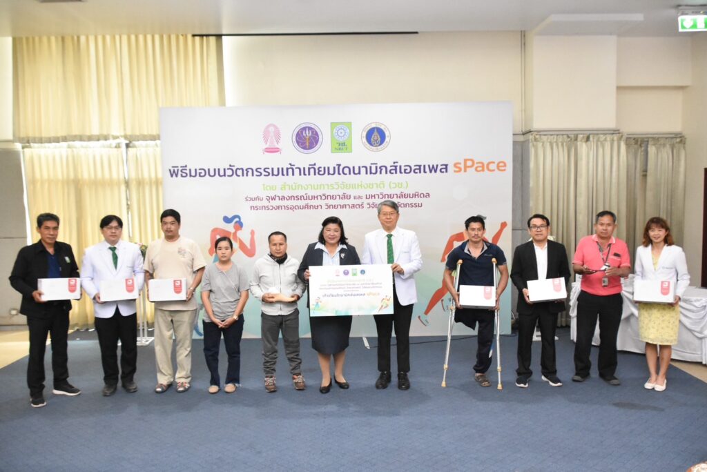 โดย (วช.) ได้มอบนวัตกรรมเท้าเทียมไดนามิก “sPace” ทั่วประเทศ จำนวน 200 ชุด โดยมอบให้โรงพยาบาลในกรุงเทพ 5 โรงพยาบาล และโรงพยาบาลในต่างจังหวัดได้แก่ ภาคใต้ 7 จังหวัด ภาคเหนือ 2 จังหวัด ภาคอีสาน 3 จังหวัด รวมทั้งสิ้น 17 โรงพยาบาล ซึ่งเท้าเทียมไดนามิกเอสเพสจะผลิตโดยบริษัท มุทา จำกัด เป็นบริษัทที่ได้รับการถ่ายทอดเทคโนโลยีจากจุฬาลงกรณ์มหาวิทยาลัย และได้ขึ้นทะเบียนสถานประกอบการผลิตและจดแจ้งผลิตภัณฑ์เท้าเทียมไดนามิกกับ อย.