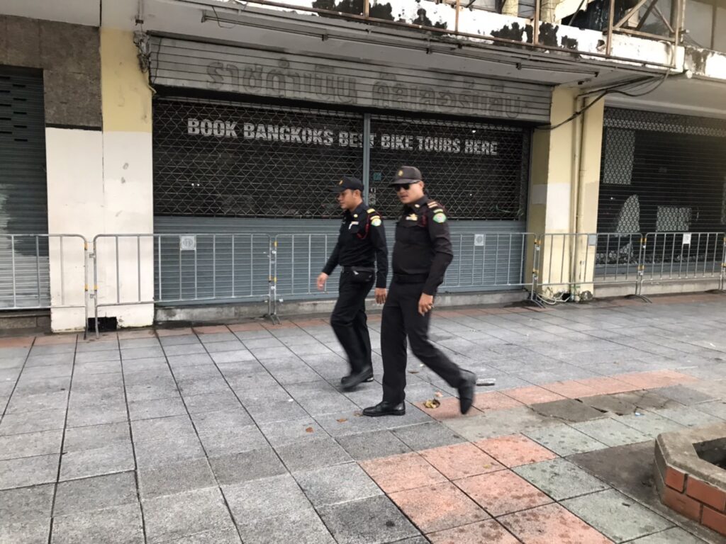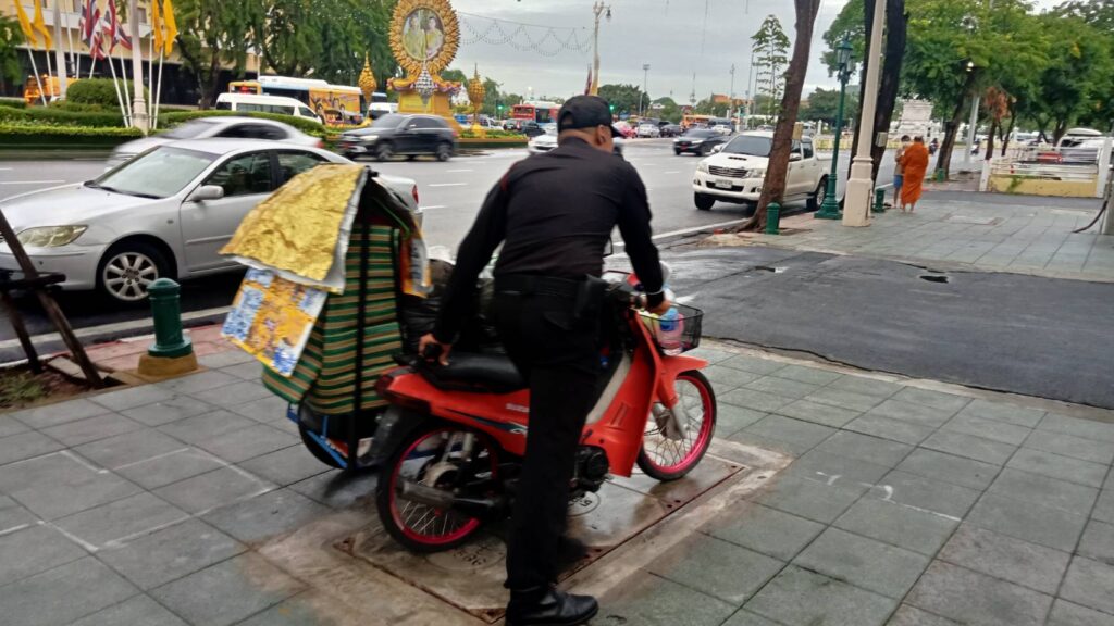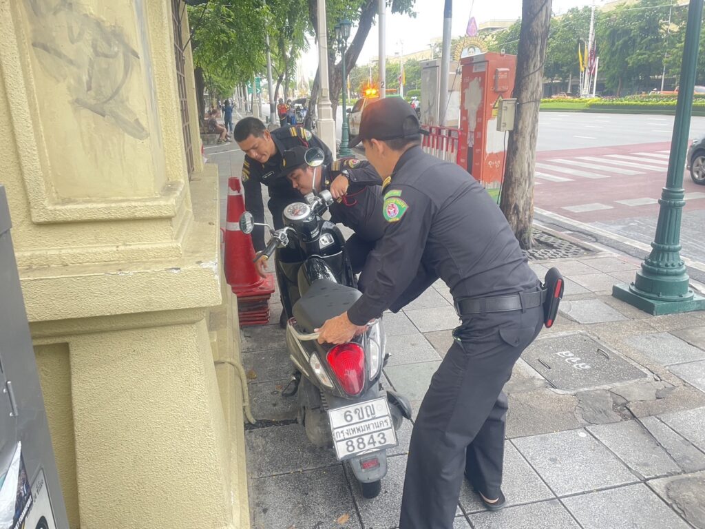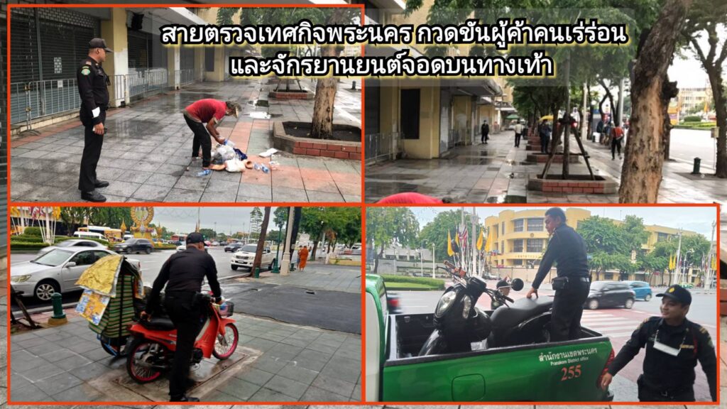 วันนี้ (24ก.ค.66) เวลา 05:47-08:30 น. นายสัมฤทธิ์ สุมาลี ผู้อำนวยการเขตพระนคร มอบหมาย นายกฤษดา เพ็ชรสีสัง ผู้ช่วยผู้อำนวยการเขตพระนคร นายณัฐชนนท์ ชญาน์ธนวิชญ์ หัวหน้าฝ่ายเทศกิจ ร.อ.ทวีศักดิ์ พรหมสุวิชา นคร52 นายศุภกฤต สูนโยธา เจ้าพนักงานงานเทศกิจชำนาญการ สั่งการให้ นายนิติ ยอดแคร่ว หัวหน้าชุดสายตรวจ จัดกำลัง เจ้าหน้าที่เทศกิจสายตรวจ ชุด255 เปลี่ยนผลัดกำลังเจ้าหน้าที่ประจำจุดตรวจจุดสกัด จุดแจกอาหารคนไร้บ้าน พร้อมทั้งลงพื้นที่ กวดขันผู้ค้าและคนเร่ร่อน และ กวดขันวินัยการขับขี่รถจักรยานยนต์บนทางเท้า บริเวณหน้าศึกษาภัณฑ์เก่า ถนนราชดำเนินกลาง ( ฝั่งขาเข้า ) เขตพระนคร กทม.