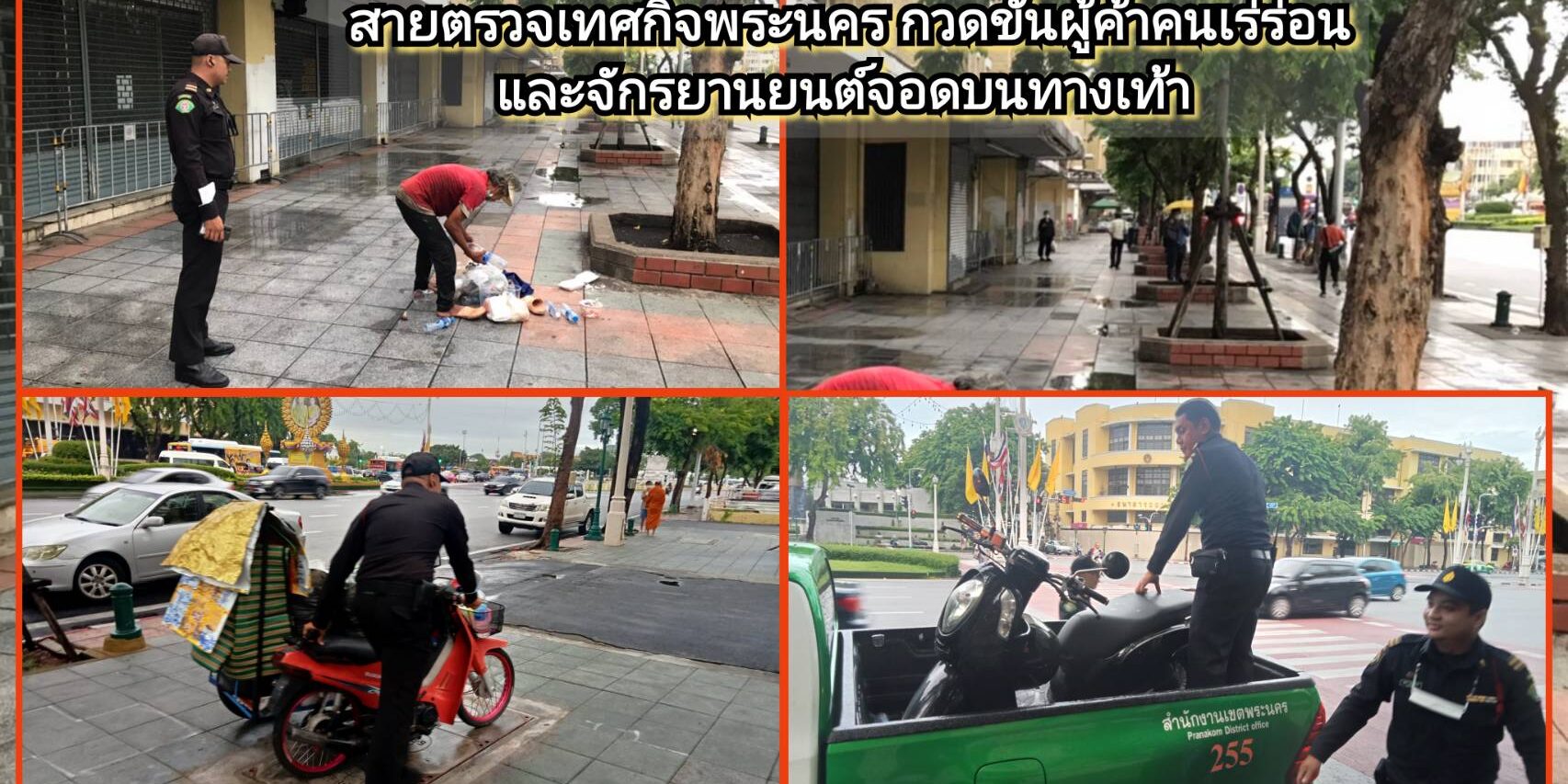 เบื้องต้นเพื่อให้ปฎิบัติงานตามนโยบายของผู้บริหารกรุงเทพมหานคร นายชัชชาติ สิทธิพันธุ์ ผู้ว่าฯกทม. เรื่องการกวดขันผู้ค้า กวดคนเร่ร่อน และ กวดขันวินัยการขับขี่รถจักรยานยนต์หรือจอดรถจักรยานยนต์บนทางเท้า เพื่อความเป็นระเบียบเรียบร้อยกรุงเทพมหานคร ผลการปฏิบัติงานวันนี้เป็นไปด้วยความเรียบร้อย..
