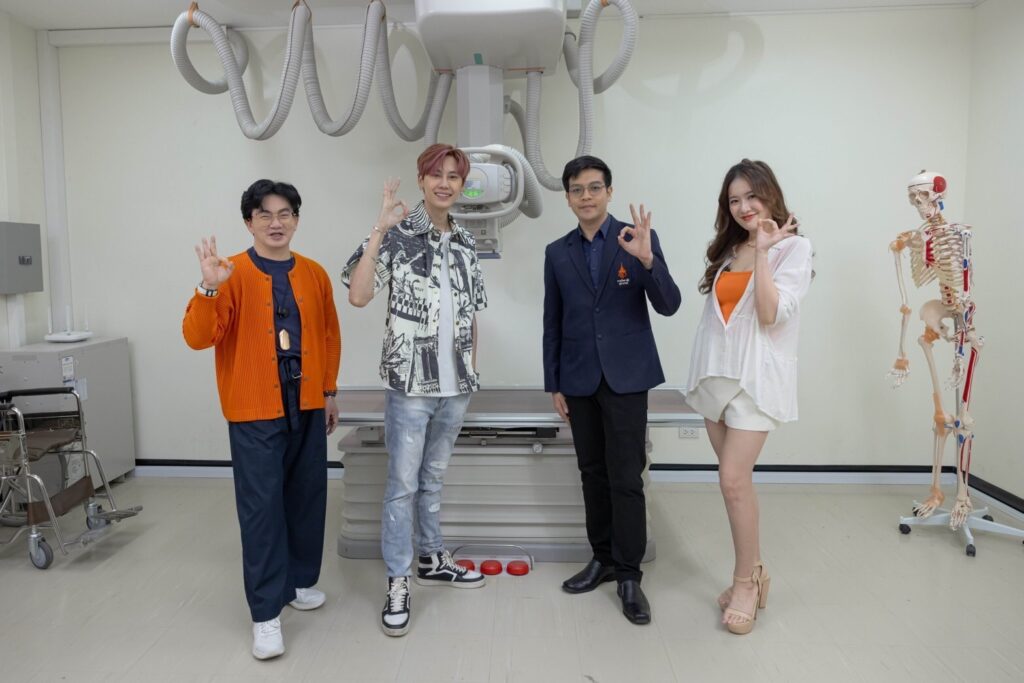 งานนี้สองพิธีกรไม่รอช้า อาสาพาไปเจาะลึกหาข้อมูลที่เป็นประโยชน์กันถึงราชวิทยาลัยจุฬาภรณ์ เข้าคอร์สติวเข้ม กับ อาจารย์นิพนธ์ สายโย อาจารย์ประจำหลักสูตรรังสีเทคนิค ผู้ช่วยคณบดีด้านกิจการนักศึกษา คณะเทคโนโลยีวิทยาศาสตร์สุขภาพ วิทยาลัยวิทยาศาสตร์การแพทย์เจ้าฟ้าจุฬาภรณ์ ราชวิทยาลัยจุฬาภรณ์ อาจารย์ผู้รับผิดชอบหลักสูตรรังสีเทคนิค ผู้เชี่ยวชาญการใช้พลังงานรังสีด้านสุขภาพ ทั้งการวินิจฉัยโรค และการรักษาโรค เหตุแห่งการบรรเจิดไอเดียเรื่องของรังสี บุ๋นเผยว่า “ช่วงนี้ผมดูหนังแล้วเห็นถึงการใช้รังสีในการรักษาโรคต่างๆ จึงเกิดความสนใจที่จะอยากรู้ข้อมูลเชิงลึก ผมขอขอบคุณทางรายการมากๆ ครับ ที่พามาให้ได้รู้ถึงประโยชน์ดีๆ ของรังสีในการรักษาโรค ที่ผมไม่เคยรู้มาก่อน และอาจเป็นประโยชน์ตอบโจทย์ให้กับผู้อื่น อีกทั้งยังเป็นแนวทางให้กับผู้ที่สนใจอยากศึกษาเกี่ยวกับวิชานี้ด้วยครับ”