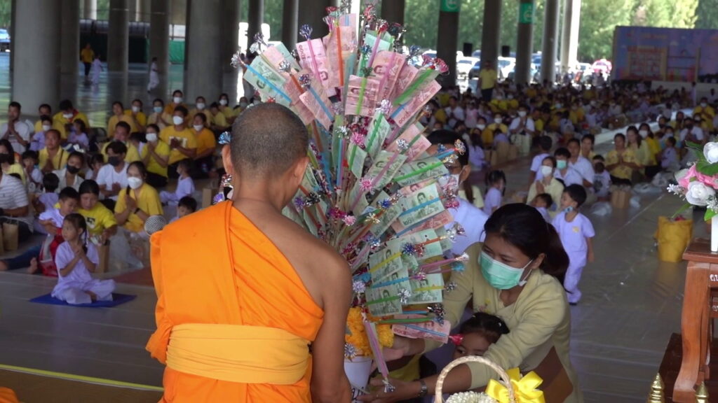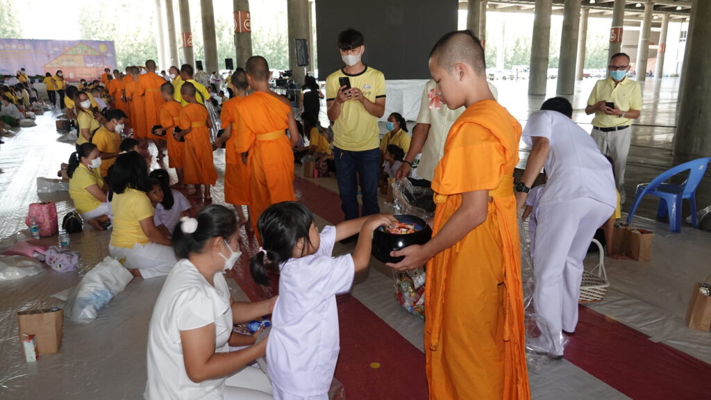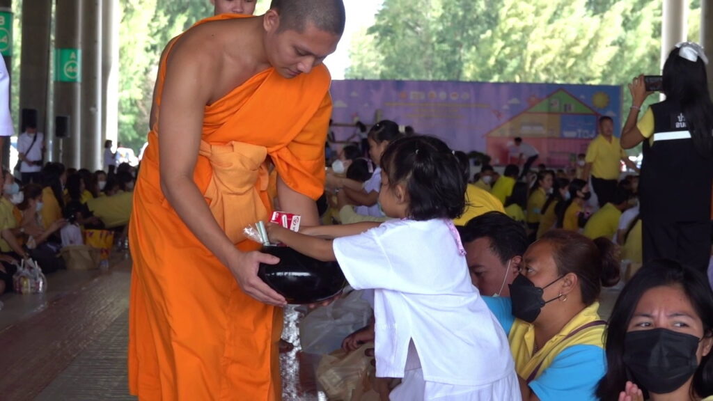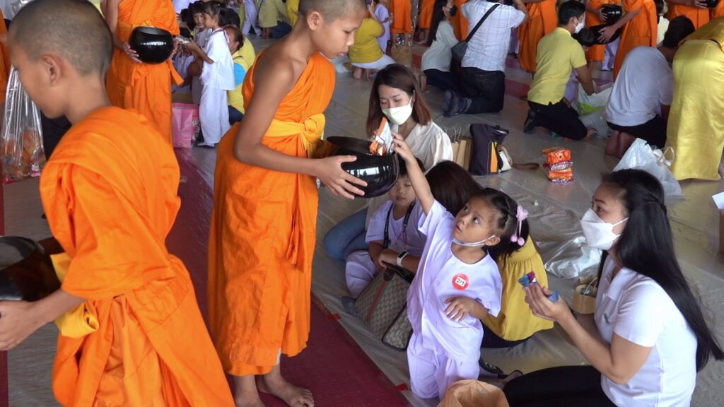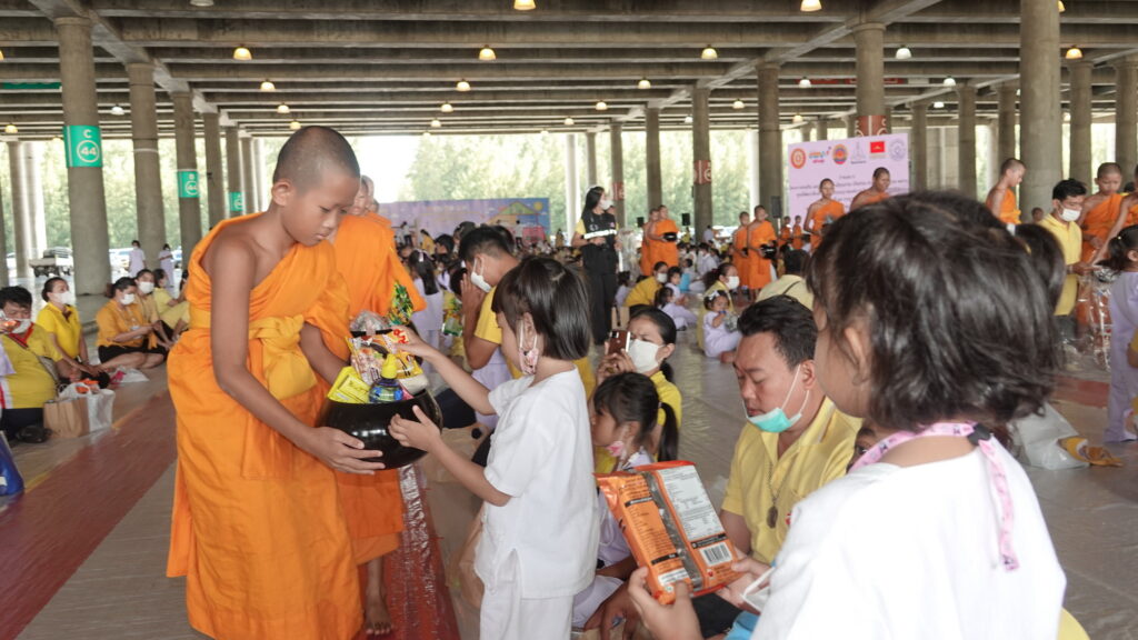 วันที่ 25 กรกฎาคม 2566 ที่ศูนย์การเรียนรู้ มหารัตนวิหารคด วัดพระธรรมกาย ตำบลคลองสาม อำเภอคลองหลวง จังหวัดปทุมธานี องค์การบริหารส่วนตำบลคลองสาม ศูนย์พัฒนาเด็กเล็ก และโรงเรียนอนุบาลองค์การบริหารส่วนตำบลคลองสาม ร่วมกับ วัดพระธรรมกาย จัดกิจกรรมให้เด็กนักเรียนอนุบาลและผู้ปกครองร่วมบุญตักบาตรพระสงฆ์ 72 รูป ถวายพระราชกุศล เนื่องในโอกาสวันเฉลิมพระชนมพรรษา พระบาทสมเด็จพระปรเมนทรรามาธิบดีศรีสินทร มหาวชิราลงกรณ พระวชิรเกล้าเจ้าอยู่หัว และถวายพระพรชัยมงคล ต่อด้วยพิธีถวายภัตตาหารเป็นสังฆทาน และพิธีทอดผ้าป่าสามัคคี ในกิจกรรม “เสกลูก ให้เป็น ลูกแก้ว” ผ่านความดีสากล 5 ประการ ในโครงการส่งเสริมและพัฒนาผู้เรียนให้เพียบพร้อมด้วยคุณธรรม จริยธรรม ประจำปี พ.ศ. 2566