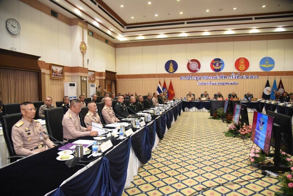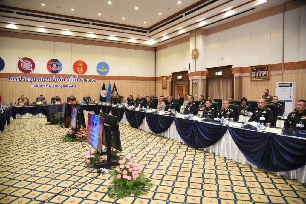 วันอังคารที่ 25 กรกฎาคม 2566 เวลา 10.15 น. กองบัญชาการกองทัพไทย จัดการประชุมผู้บัญชาการเหล่าทัพ ครั้งที่ 5 ประจำปีงบประมาณ พ.ศ.2566 โดยมี พลเอก เฉลิมพล ศรีสวัสดิ์ ผู้บัญชาการทหารสูงสุด เป็นประธาน พร้อมด้วย ผู้บัญชาการทหารบก ผู้บัญชาการทหารเรือ ผู้บัญชาการทหารอากาศ และ ผู้บัญชาการตำรวจแห่งชาติ เข้าร่วมประชุม ณ ห้องศรียานนท์ ชั้น 2 อาคาร 1 สำนักงานตำรวจแห่งชาติ