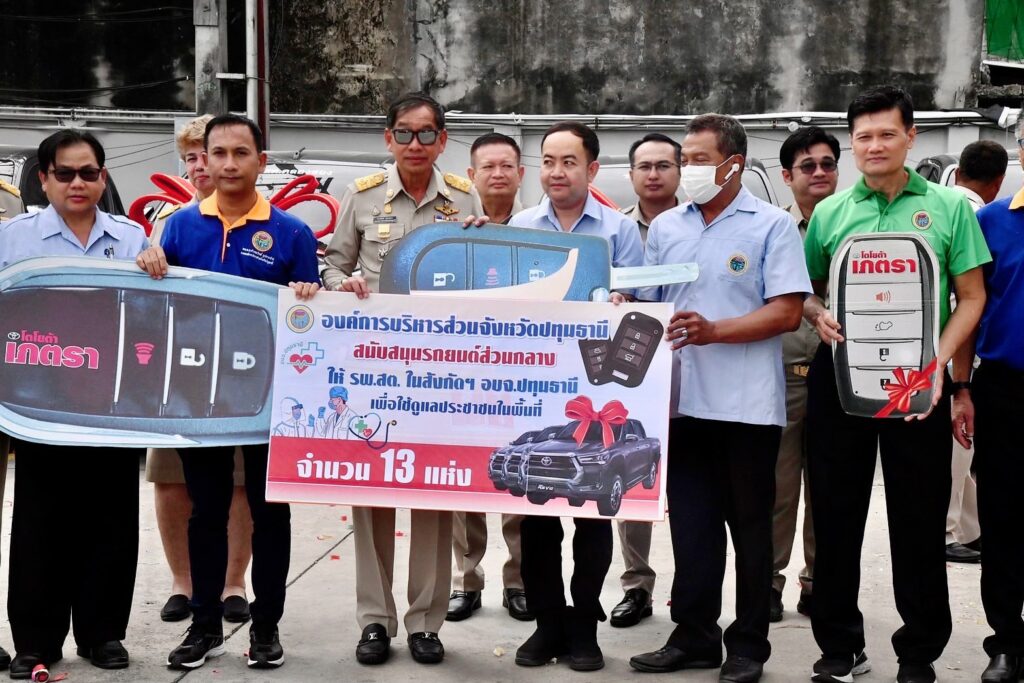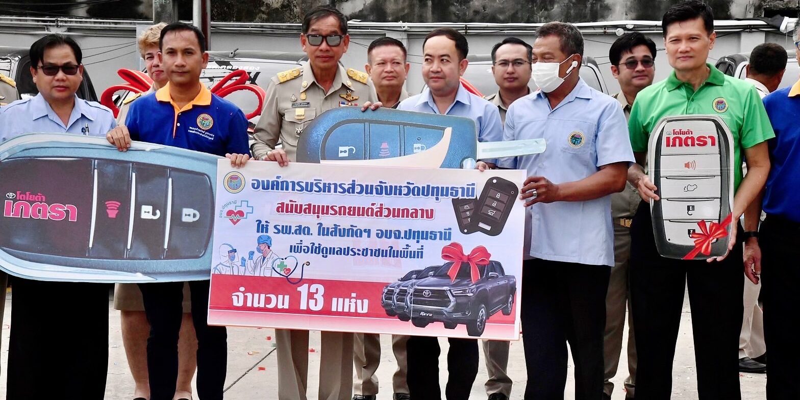 พร้อมทั้งสนับสนุนรถยนต์ส่วนกลางให้โรงพยาบาลส่งเสริมสุขภาพตำบลในสังกัดองค์การบริหารส่วนจังหวัดปทุมธานี จำนวน 13 แห่ง ใช้งบประมาณทั้งสิ้นเกือบ 10 ล้านบาท เพื่อนำไปใช้ประโยชน์ในการดูแลประชาชนในพื้นที่ โดยมีผู้อำนวยการ รพ.สต. และเจ้าหน้าที่โรงพยาบาลส่งเสริมสุขภาพตำบลเป็นผู้รับมอบ ณ บริเวณหน้าสำนักงานองค์การบริหารส่วนจังหวัดปทุมธานี.