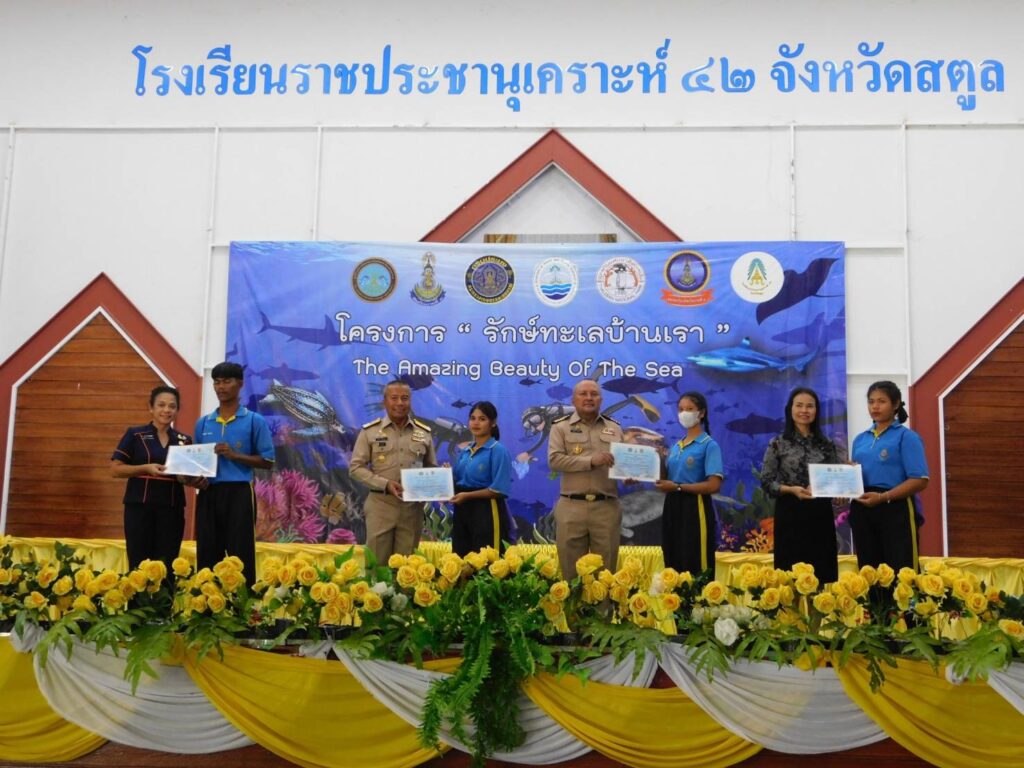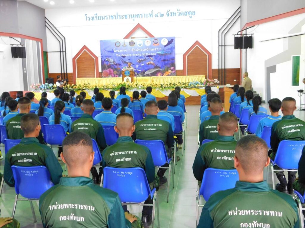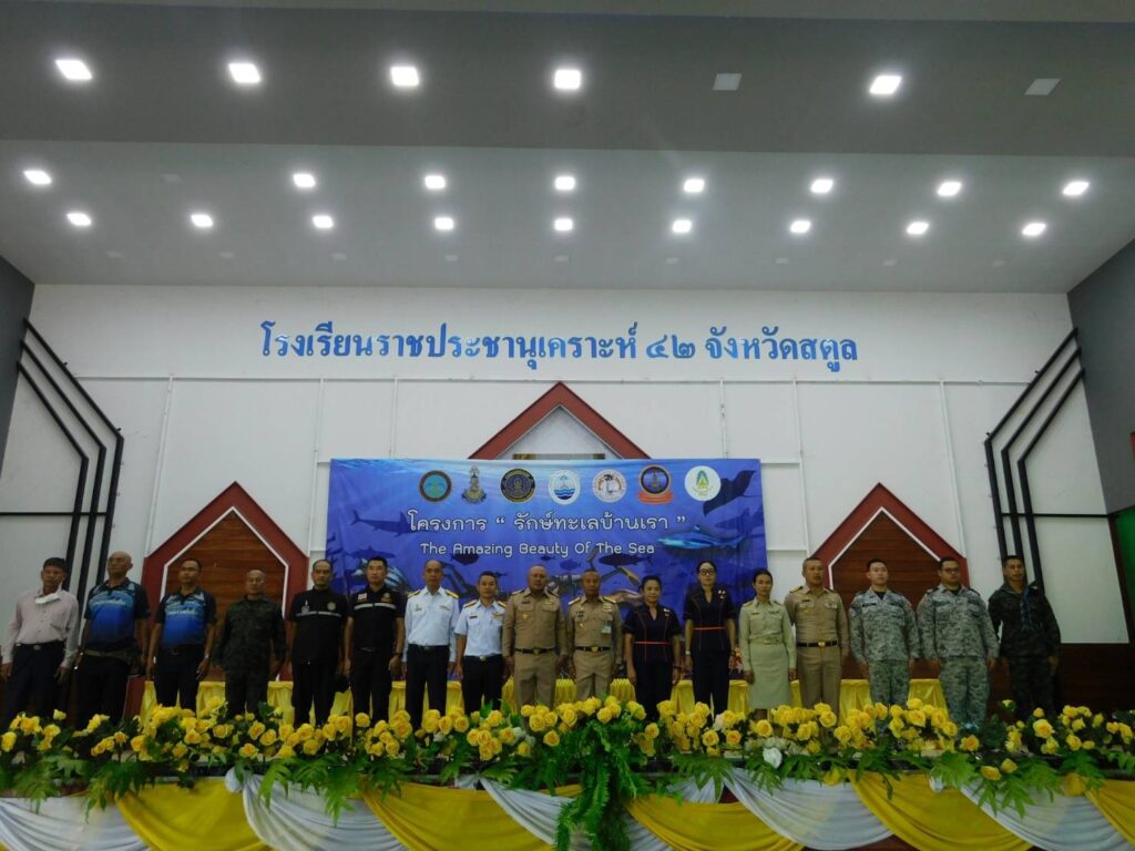 ที่อาคารเย็นศิระ โรงเรียนราชประชานุเคราะห์ 42 จังหวัดสตูล ตำบลคลองขุด อำเภอเมืองสตูล จังหวัดสตูล พลเรือโท อาภากร อยู่คงแก้ว ผู้อำนวยการศูนย์อำนวยการรักษาผลประโยชน์ของชาติทางทะเลภาค 3 ผู้บัญชาการทัพเรือภาคที่ 3 เป็นประธานกิจกรรมโครงการ “รักษ์ทะเลบ้านเรา” ปลูกฝังสร้างจิตสำนึกให้กับเยาวชนรู้คุณค่าของทรัพยากรธรรมชาติทางทะเลในพื้นที่จังหวัดสตูล โดยมี นาวาเอกแสนย์ไท บัวเนียม รองผู้อำนวยการรักษาผลประโยชน์ของชาติทางทะเลจังหวัดสตูล พร้อมด้วยหัวหน้าส่วนราชการ นักเรียนและกำลังพลจากหน่วยต่างๆ เข้าร่วมกิจกรรมเป็นจำนวนมาก
