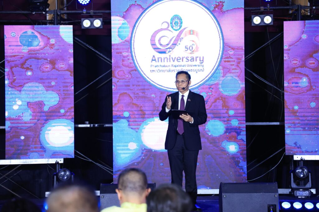 จากนั้น ผศ.ดร.ปรีชา ศรีเรืองฤทธิ์ อธิการบดีมหาวิทยาลัยราชภัฏเพชรบูรณ์ ได้ขึ้นแถลงข่าวกล่าวถึงรายละเอียดของกิจกรรมเฉลิมฉลองครบรอบ 50 ปี มหาวิทยาลัยราชภัฏเพชรบูรณ์ ภายใต้ชื่องาน 50th Innvation Next Expo 2023 Think Global Work Local : นำท้องถิ่นสู่สากล ซึ่งจัดขึ้นในวันที่ 22-26 พฤศจิกายน 2566 ณ มหาวิทยาลัยราชภัฏเพชรบูรณ์ ภายในงานประกอบด้วยกิจกรรม 2 ส่วน ดังนี้ กิจกรรมภาควิชาการ/เทคโนโลยี/นวัตกรรม (09.00-16.30 น.) ประกอบด้วย นิทรรศการ 50 ปี มหาวิทยาลัยราชภัฏเพชรบูรณ์ 50th Anniversary PCRU นิทรรศการสุดยอดผลงานวิจัยและนวัตกรรม PCRU Research & Innovationกิจกรรมเชิงสร้างสรรค์ของ 6 คณะ PCRU Recreational Activitiesกิจกรรมศูนย์การเรียนรู้และถ่ายทอดเทคโนโลยี PCRU Learning & Technology Centerกิจกรรมด้านภาษา PCRU languageนิทรรศการเทคโนโลยีสุดล้ำ นวัตกรรมแห่งอนาคต Innovation Nextนิทรรศการนวัตกรรมเพื่อพลังงานและสิ่งแวดล้อม Innovation For Energy And Environmentนิทรรศการเศรษฐกิจสร้างสรรค์มหัศจรรย์ของดีเพชรบูรณ์ Soft Power Phetchabunนิทรรศการด้านเทคโนโลยีและนวัตกรรมดิจิทัล Digital Transformationการจัดแสดงสินค้าด้านเทคโนโลยีและนวัตกรรมรถยนต์ Motor Showการจัดแสดงสินค้าและบริการด้านไอที Intelligent IT world