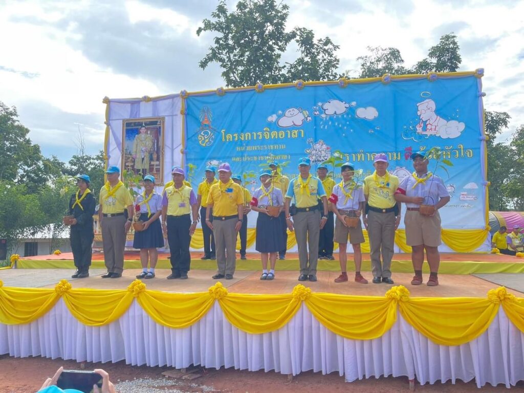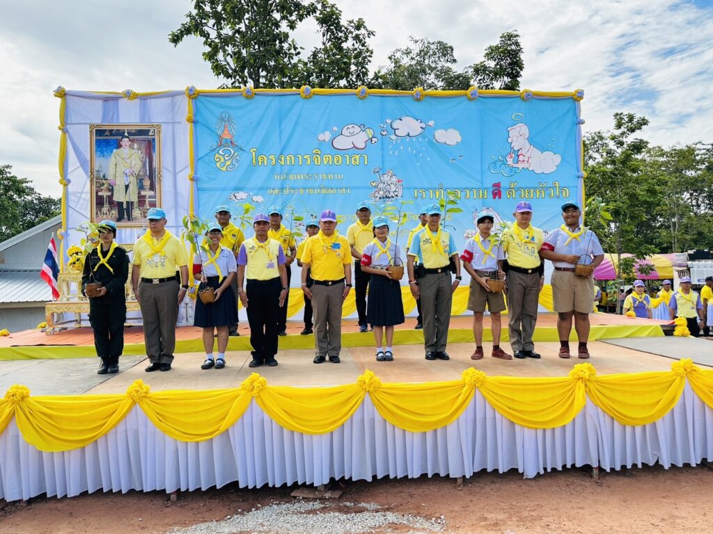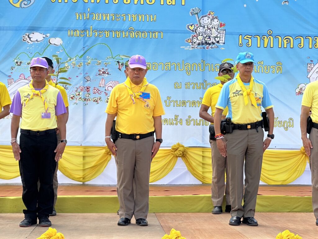 วันที่ 26 กรกฎาคม 2566 เวลา 09.00 น. ที่สวนป่าสาธารณะ บ้านตาดพัฒนา หมู่ที่ 13 ตำบลตลาดแร้ง อำเภอบ้านเขว้า จังหวัดชัยภูมิ พลตำรวจเอก ดำรงศักดิ์ กิตติประภัสร์ ผบ.ตร. พร้อมด้วย พลตำรวจเอก ต่อศักดิ์ สุขวิมล รอง ผบ.ตร.,นายโสภณ สุวรรณรัตน์ ผู้ว่าราชการจังหวัดชัยภูมิ,พล.ต.ท.สมประสงค์ เย็นท้วม ผบช.ภ.3,พล.ต.ท.นัยวัฒน์ ผะเดิมชิต ผบช.สยศ.ตร.,ศูนย์จิตอาสาพระราชทานจังหวัดชัยภูมิ,ตำรวจภูธรภาค 3,จังหวัดชัยภูมิ,ฝ่ายปกครอง,ตำรวจภูธรจังหวัดชัยภูมิ นักเรียน นักศึกษา สถาบันการศึกษา โรงเรียนในจังหวัดชัยภูมิ และประชาชนจิตอาสา กว่า 1,000 คน