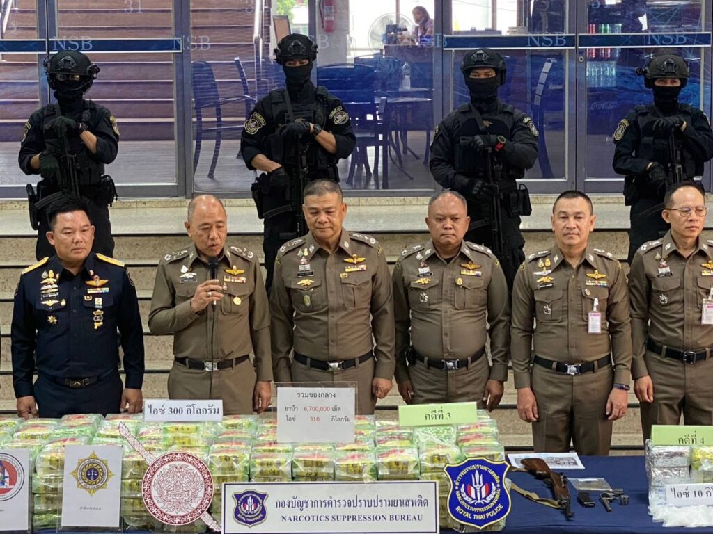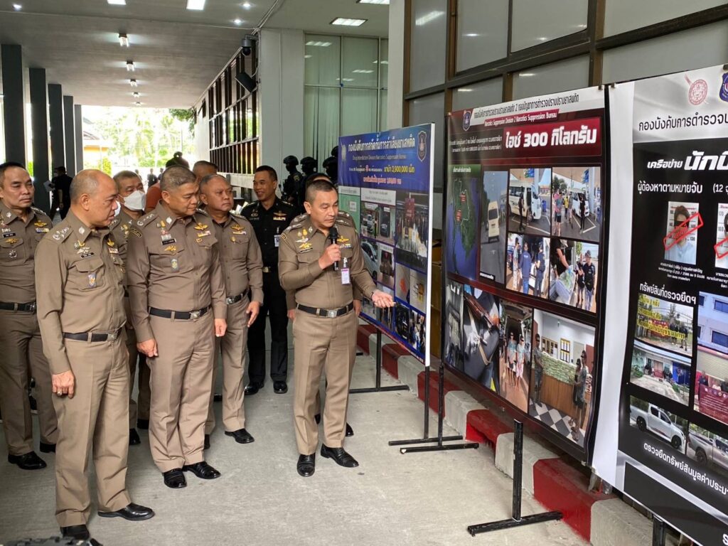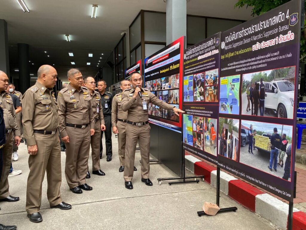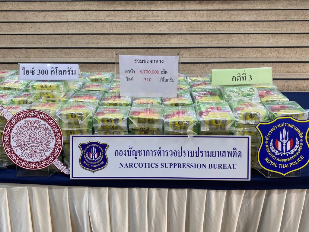วันที่ 26 ก.ค.2566 เวลาประมาณ 10.00 น. พล.ต.อ.ชินภัทร สารสิน รอง ผบ.ตร./ผอ.ศอ.ปส.ตร.,พล.ต.ท.สรายุทธ สงวนโภคัย ผบช.ปส.,พล.ต.ต.พลัฏฐ์ วิเศษสิงห์ ผบก.สกส.,พล.ต.ต.สมกิตพุ่มวารี ผบก.ขส.พล.ต.ต.ปิยะวัฒน์ บุญยืนอนนต์ ผบก.ปส.1,พล.ต.ต.ธนรัชน์ สอนกล้า ผบก.ปส.2,พล.ต.ต.คมสิทธิ์ รังไสย์ ผบก.ปส.3,พล.ต.ต.พรศักดิ์ สุรสิทธิ์ ผบก.ปส.4 พร้อมด้วย เจ้าหน้าที่ ป.ป.ส. และ กอ.รมน. ร่วมแถลงผลการจับกุมเครือข่ายยาเสพติดตามนโยบายของ พล.ต.อ.ดำรงศักดิ์ กิตติประภัสร์ ผบ.ตร. ให้กวาดล้างจับกุมเครือข่ายยาเสพติด รายใหญ่และรายย่อยให้หมดสิ้นโดยเร็ว ล่าสุดตำรวจ ปส.(NSB) สามารถจับกุมผู้ต้องหา 20 ราย พร้อมของกลางยาบ้า 6.7 ล้านเม็ด ไอซ์ 310 กก. และมีการเปิดปฏิบัติการปิดล้อมตรวจค้น กว่า 67 จุด ยึดอายัดทรัพย์สินทั้งที่ดินพร้อมสิ่งปลูกสร้าง รถยนต์ รถจักรยานยนต์ และทรัพย์สินอื่นๆ มูลค่ารวมกว่า 135 ล้านบาท และเร่งขยายผลจับกุมเครือข่ายที่เหลือต่อไป