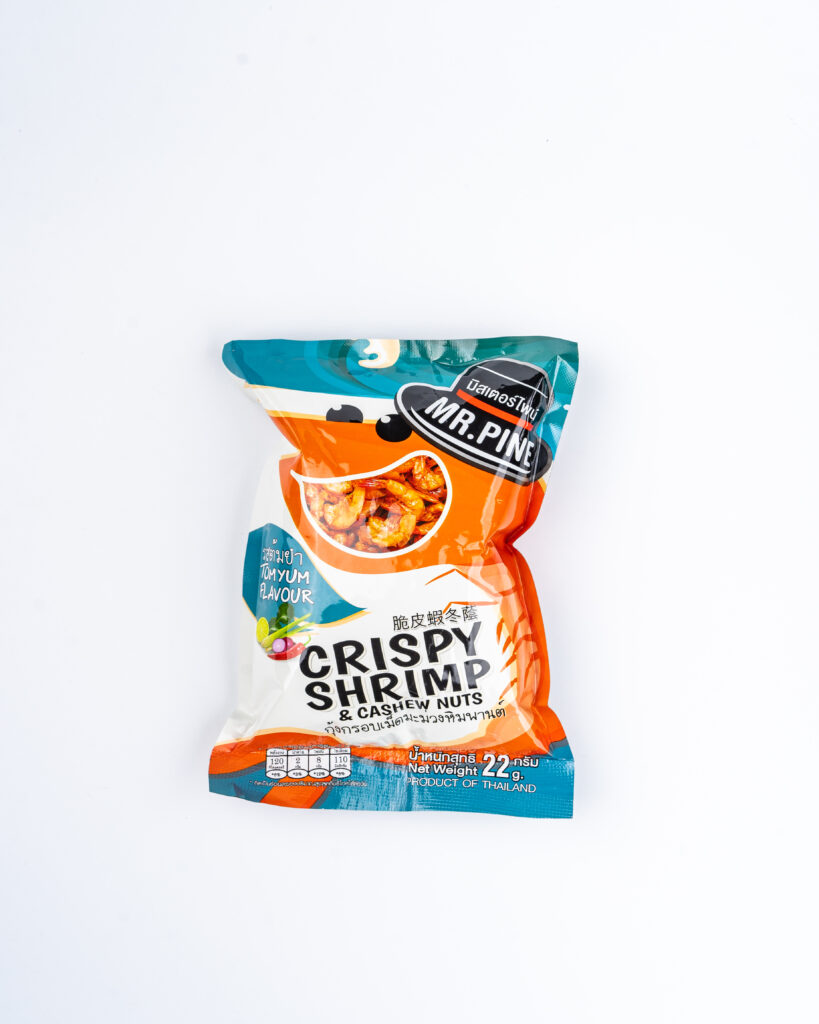 ผลิตภัณฑ์กุ้งกรอบเม็ดมะม่วงหิมพานต์รสต้มยำ เป็นการนำกุ้งขนาดพอดีคำมาทอดทั้งเปลือกด้วยระบบสุญญากาศ เพื่อให้ได้กุ้งที่กรอบ เบา เพิ่มรสชาติและกลิ่นหอมด้วยเครื่องสมุนไพรไทยพร้อม ถั่วทอด และเครื่องต้มยำ มีไขมันต่ำ โปรตีนและแคลเซียมสูง เป็นอาหารว่าง และใช้ปรุงประกอบร่วมกับอาหารชนิดอื่นได้ เช่น ยำ สลัด และข้าวผัด เป็นต้น อร่อย ทานง่าย พกพาสะดวก เก็บได้นาน ด้วย