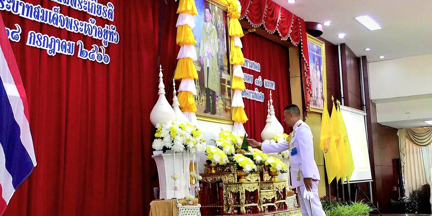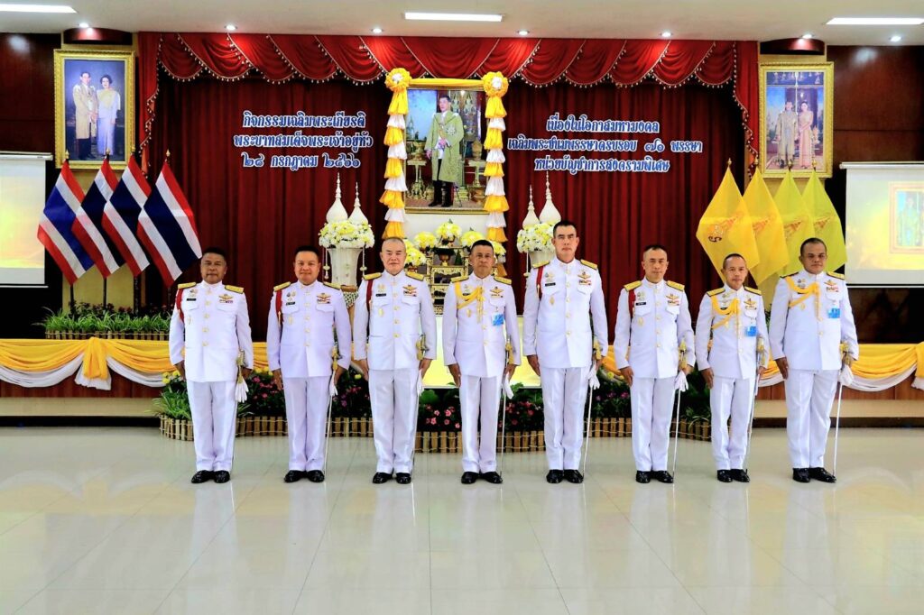 ที่ แหล่งสมาคมหน่วยบัญชาการสงคามพิเศษ ค่ายสมเด็จพระนารายณ์มหาราช อ.เมือง จ.ลพบุรี พลโท ณัฐวุฒิ นาคะนคร ผู้บัญชาการหน่วยบัญชาการสงคามพิเศษ เป็นประธาน นำข้าราชการกำลังพล จากหน่วยขึ้นตรงในพื้นที่ จังหวัดลพบุรี ตลอดจนสมาชิกสมาคมแม่บ้านทหารบก สาขาหน่วยบัญชาการสงครามพิเศษ คณะครูนักเรียน โรงเรียนกองทัพบกอุปถัมภ์ค่ายนารายณ์ศึกษา ร่วมประกอบ พิธีถวายเครื่องราชสักการะ ถวายราชสดุดี ถวายพระพรชัยมงคล และถวายสัตย์ปฏิญาณ ต่อเบื้องหน้าพระบรมฉายาลักษณ์ พระบาทสมเด็จพระเจ้าอยู่หัว ฯ ว่า…จะประพฤติปฏิบัติตนเป็นข้าราชการที่ดี และพลังของแผ่นดิน มีความซื่อสัตย์สุจริต เจริญรอยตามเบื้องพระยุคลบาท มุ่งมั่นแน่วแน่แก้ไขปัญหาของประเทศชาติและประชาชน สร้างสรรค์คุณประโยชน์แก่แผ่นดิน และดำเนินชีวิตโดยยึดมั่นในหลักธรรมคำสอนแห่งศาสนา ตามแนวทางในพระบรมราโชวาท พร้อมทั้งร่วมกันขับร้องบทเพลง สรรเสริญพระบารามี สดุดีจอมราชา เพื่อแสดงความจงรักภักดี และสำนึกในพระมหากรุณาธิคุณ ที่ได้ทรงปฏิบัติบำเพ็ญพระราชกรณียกิจน้อยใหญ่นานัปการ เพื่อประโยชน์อันมหาศาลของประเทศชาติ และประชาชนชาวไทย เนื่องในโอกาสวันเฉลิมพระชนมพรรษา 71 พรรษา พระบาทสมเด็จพระเจ้าอยู่หัว ประจำปี 2566 อย่างพร้อมเพียงกัน
