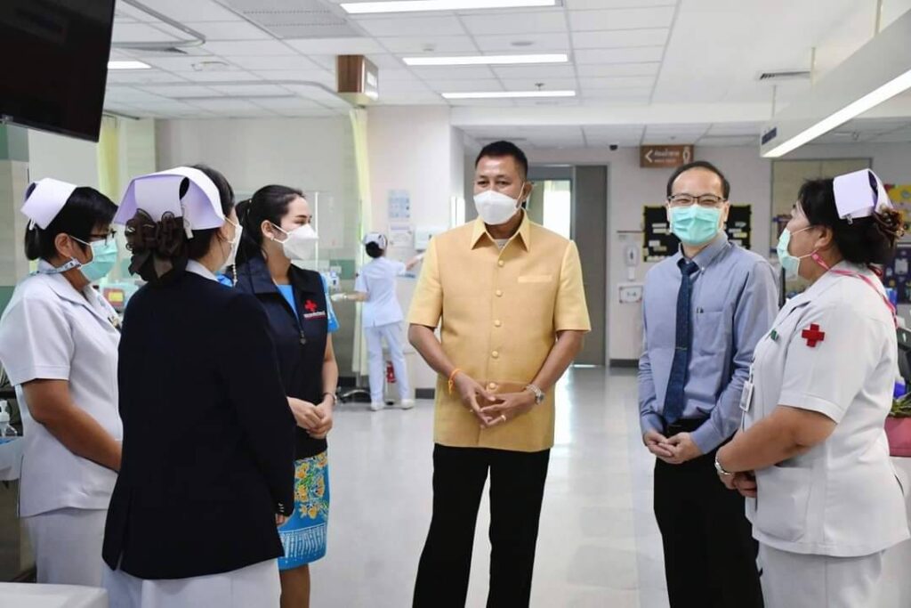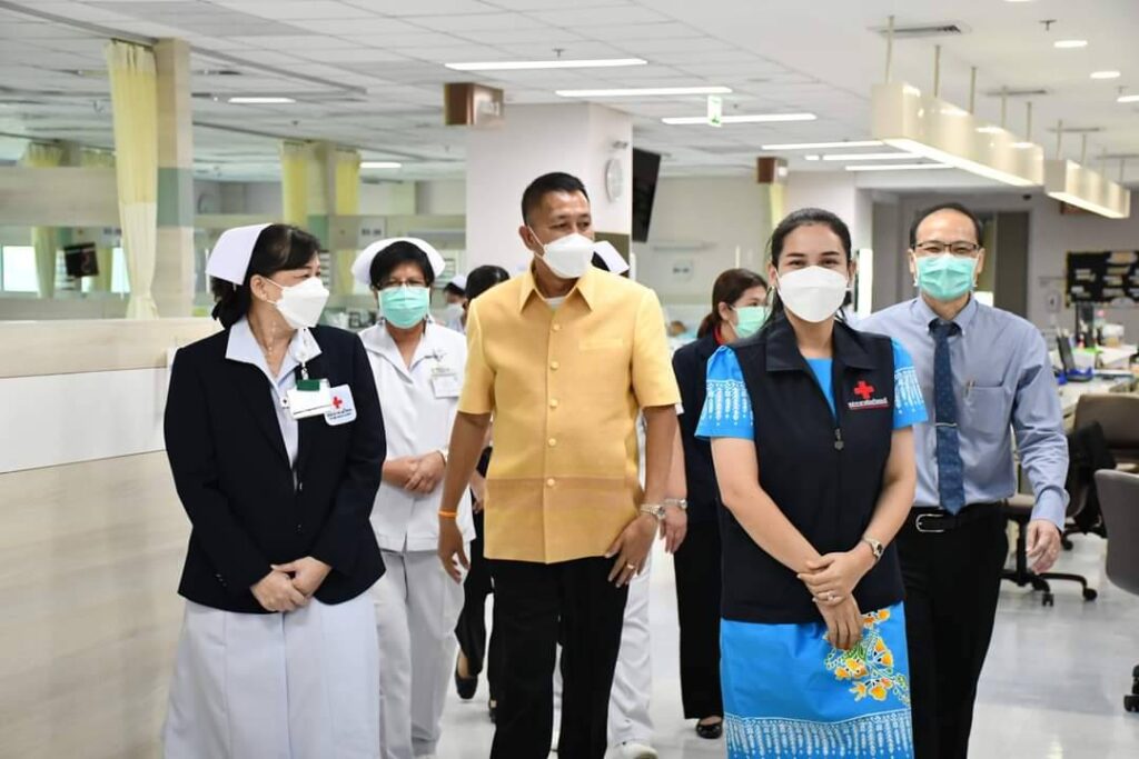 วันพุธที่ 26 กรกฎาคม 2566 เวลา 16.30 น. ณ โรงพยาบาลสมเด็จพระบรมราชเทวี ณ ศรีราชา สภากาชาดไทย อำเภอศรีราชา จังหวัดชลบุรี นายธวัชชัย ศรีทอง ผู้ว่าราชการจังหวัดชลบุรี พร้อมด้วยนางสาวประภัสรา ศรีทอง นายกเหล่ากาชาดจังหวัดชลบุรี ร่วมมอบสิ่งของและผลไม้ให้แก่เจ้าหน้าที่ผู้ปฏิบัติงานโรงพยาบาลสมเด็จพระบรมราชเทวี ณ ศรีราชา สภากาชาดไทย และผู้ป่วยที่มารับบริการที่โรงพยาบาลฯ เพื่อสร้างขวัญกำลังใจ รวมทั้งรับฟังปัญหาอุปสรรคและข้อเสนอแนะในการปฏิบัติงานจากเจ้าหน้าที่ผู้ปฏิบัติงานและการใช้บริการจากผู้รับบริการโรงพยาบาลชลบุรี โดยมีนายแพทย์สมยศ โลห์จินดาพงศ์ รองผู้อำนวยการโรงพยาบาลสมเด็จพระบรมราชเทวี ณ ศรีราชา สภากาชาดไทย แพทย์ พยาบาล และเจ้าหน้าที่ ให้การต้อนรับ