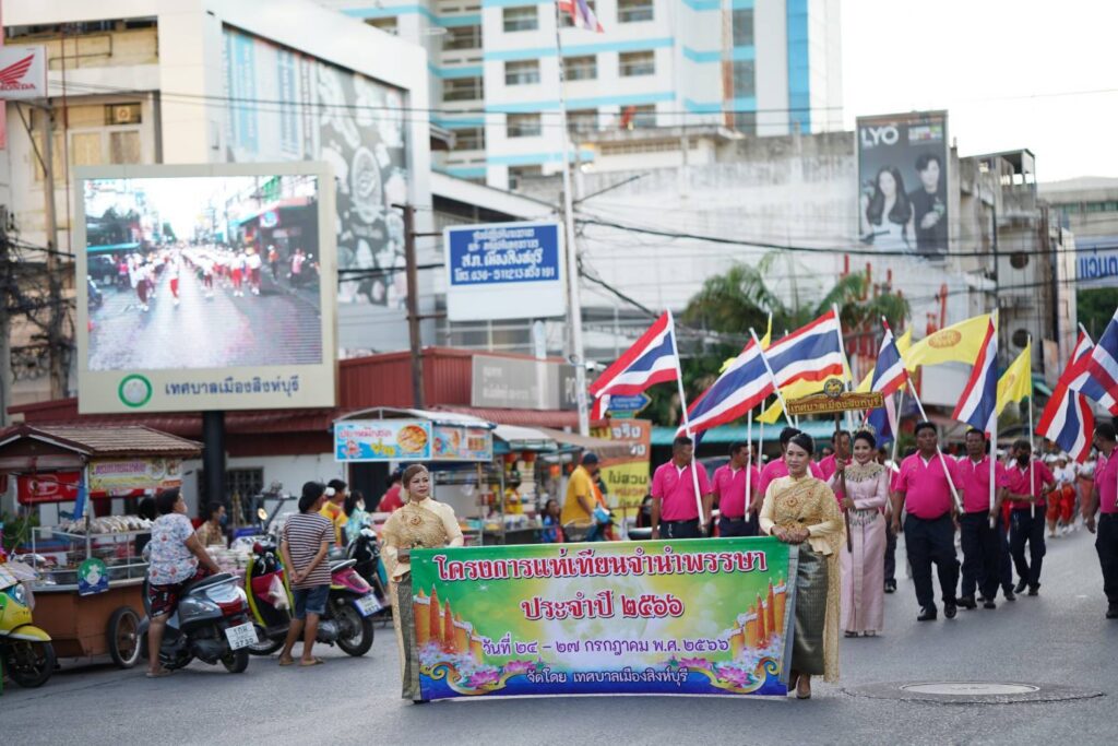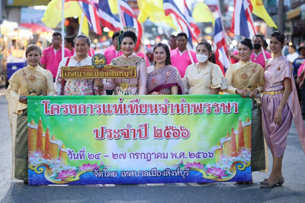 โดยก่อนหน้านี้เทศบาลเมืองสิงห์บุรีได้เปิดให้ประชาชนมาร่วมหล่อเทียนจำนำพรรษา ตั้งแต่วันที่ 24 – 27 กรกฎาคม ที่ผ่านมา เพื่อเป็นสิริมงคลเป็นบุญเป็นกุศลที่ได้ร่วมหล่อเทียนและทำบุญผ้าป่าจำนวน 9 วัดด้วยกัน