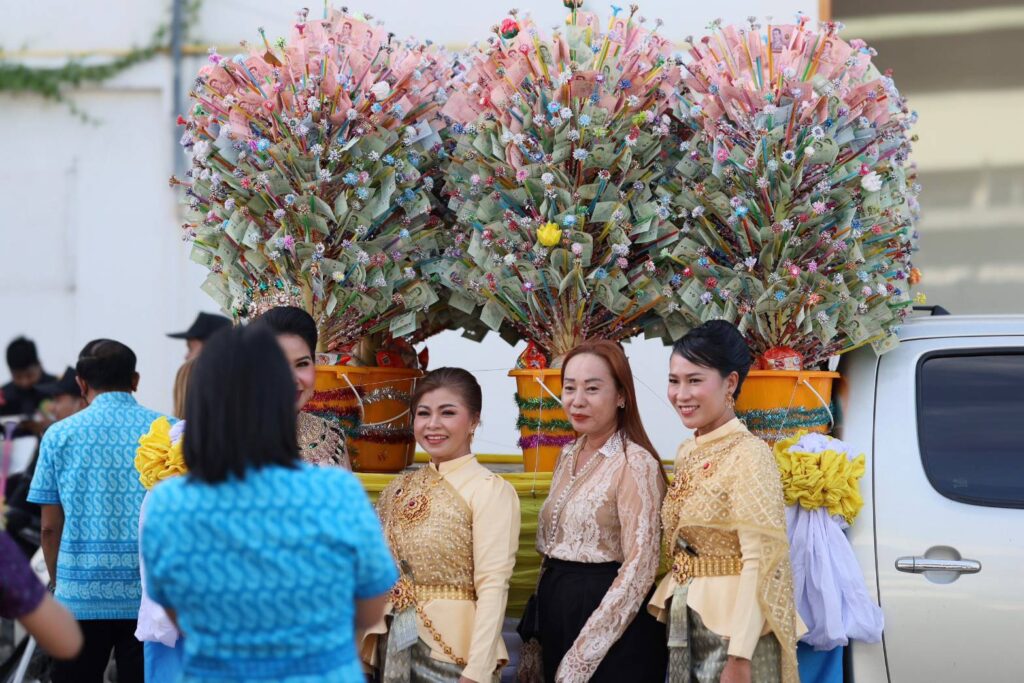 สำหรับขบวนแห่เทียนจำนำพรรษาในมีนักเรียนอต่งตัวสวยงาม นางรำจากคณะรำวง 3 ส. มาร่วมรำแห่ขบวนเทียนพรรษาไปสู่วัดโพธิ์แก้วนพคุณจำนวนกว่า 300 คน พร้อมกันนี้รถแห่เทียนพรรษา ถูกตกแต่งอย่างสวยงาม เมื่อขบวนแห่เทียน ไปถึงวัดโพธิ์แก้วนพคุณ ผู้คนจากชุมชนต่างๆ จะนำเทียนพรรษาไปถวายวัดในเขตชุมชนของตนเองเป็นลำดับต่อไป