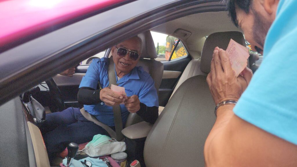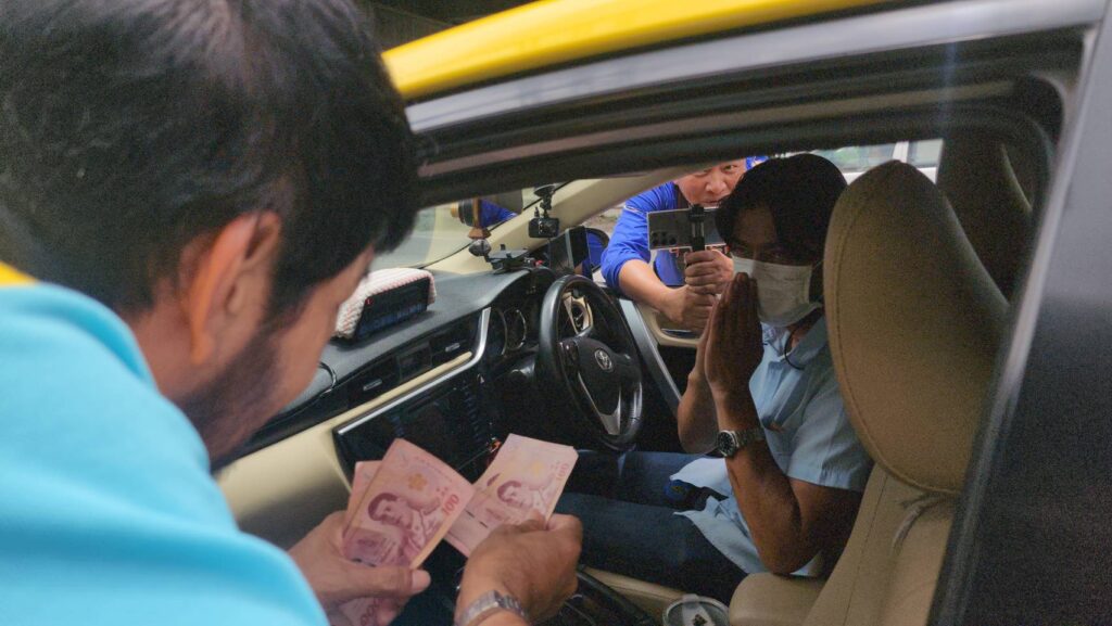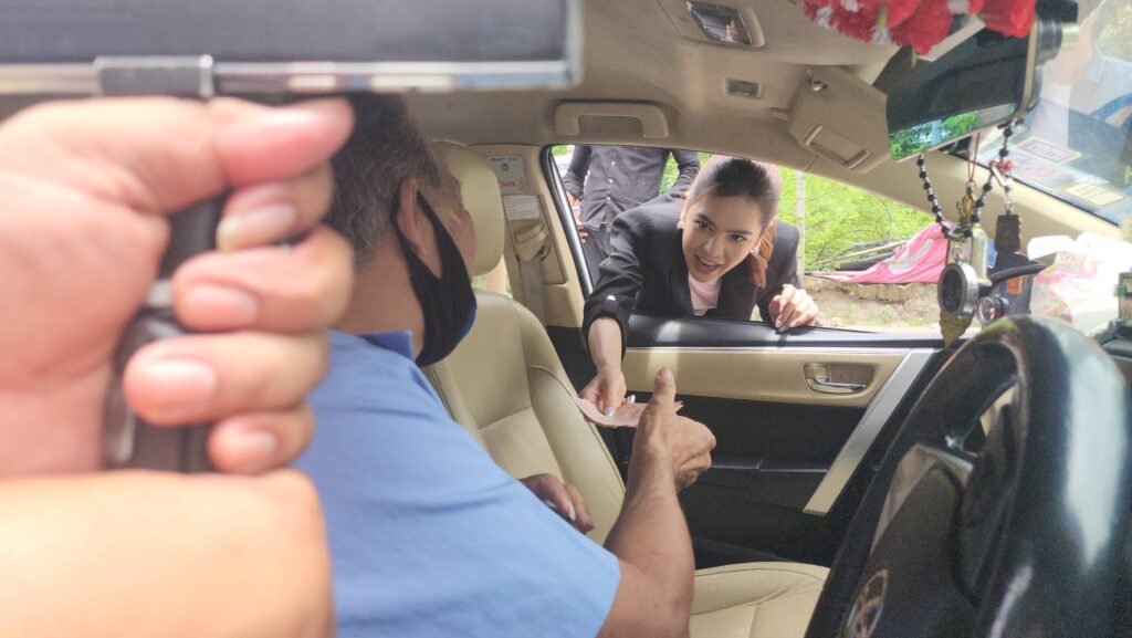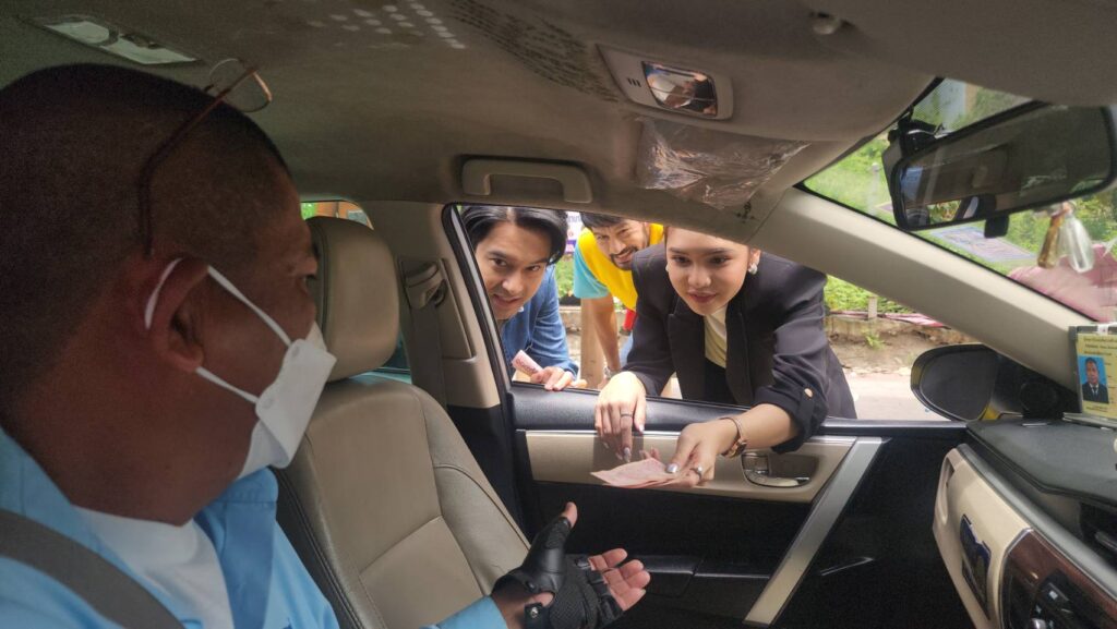 “บิณฑ์” ได้ชวนทีมงานและ นักแสดงออกมา ที่ถนนบางนาตราด และ โบกเรียกรถแท๊กซี่โดยได้มอบเงิน คัน ละ 500 บาท เป็นค่าเช่า หรือค่าเติมแก๊สให้เป็นทุน กับรถแท๊กซี่ ที่ผ่านทางมา กว่า 60 คัน