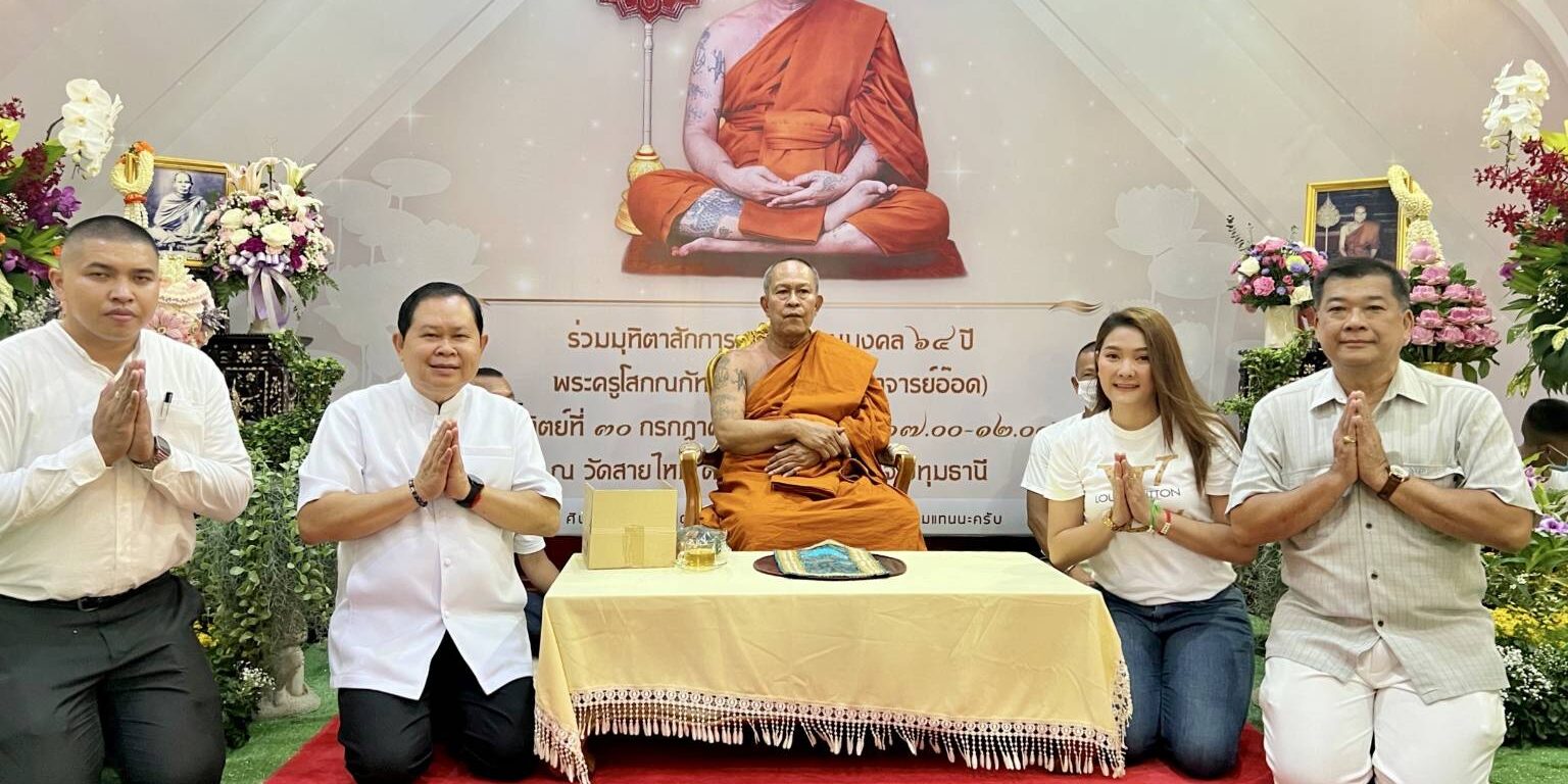 ที่วัดสายไหม ต.คูคต อ.ลำลูกกา จ.ปทุมธานี พระราชสุทธิธรรมาจารย์ เจ้าคณะจังหวัดปทุมธานี เจ้าอาวาสวัดประยูรธรรมาราม ประธานฝ่ายสงฆ์ในพิธีมุทิตาสักการะฉลองอายุวัฒนะมหามงคลครบ 64 ปี พระครูโสภณภัทรเวทย์,ดร. (หลวงพ่ออ๊อด ปธานิโก) เจ้าอาวาสวัดสายไหม รองเจ้าคณะอำเภอลำลูกกา โดยมี พระราชวรเมธาอาจารย์ เจ้าอาวาสวัดโบสถ์ เจ้าคณะจังหวัดปทุมธานี(ธรรมยุต)และคณะสงฆ์ต่างๆ เดินทางมาร่วมมุทิตาสักการะฉลองอายุวัฒนะกันอย่างคับคั่ง