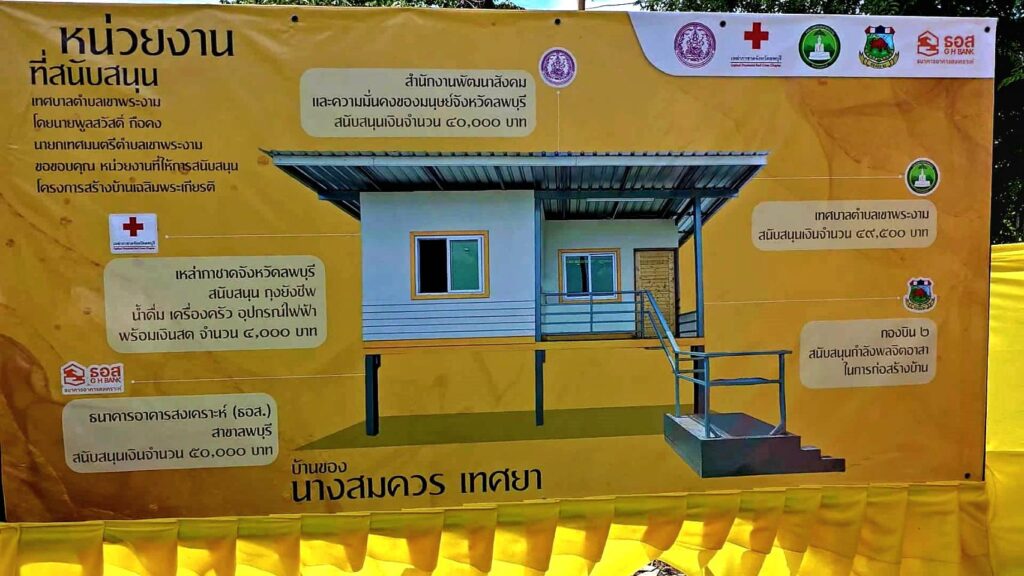 ทั้งนี้ สืบเนื่องจากที่ผ่านมา เกิดลมพายุพัดแรง ทำให้บ้านหลังดังกล่าวประสบปัญหาวาตภัย ที่อยู่อาศัย ได้รับความเสียหายทั้งหลัง เทศบาลตำบลเขาพระงามได้บูรณาการ และประสานความร่วมมือจากจิตอาสาทุกภาคส่วน เพื่อให้การช่วยเหลือบรรเทาทุกข์ในเบื้องต้น และได้รับการสนับสนุนกำลังพลจิตอาสาในการก่อสร้าง จากทหารอากาศ กองบิน 2 เข้าดำเนินการในการปลูกสร้างบ้านในครั้งนี้ จนแล้วเสร็จ