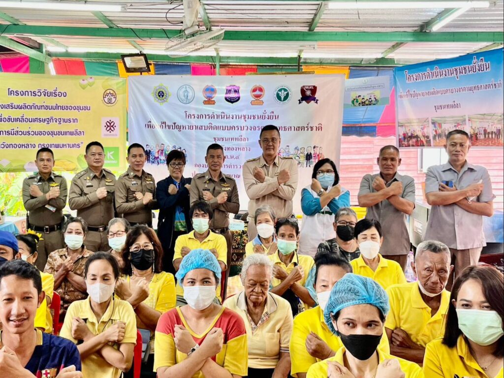 ทั้งนี้ได้ส่งเสริมให้ผู้เข้ารับการบำบัดมีงานทำ โดยมี 19 คนสามารถประกอบอาชีพได้แล้วและได้เสนอของบประมาณจากสำนักเขตวังทองหลางให้ 4 คน ได้รับ “ทุนประกอบอาชีพ” ให้คนละ 5,000 บาท อีกทั้งประสานงานให้ชุมชนเทพลีลา เสนอของบประมาณจาก กทม. จำนวน 200,000 บาท เสนอโครงการชุมชนเข้มแข็งพัฒนาตนเองตามหลักปรัชญาเศรษฐกิจพอเพียงเพื่อพัฒนาศักยาภาพการฝึกซ้อมกลองยาว และซื้ออุปกรณ์สำหรับฝึกอาชีพ ซึ่งในชมรมฯ มีการให้ลูกหลานของผู้ที่ผ่านการบำบัดเข้าร่วมชมรมฝึกซ้อมกลองยาว นำผู้ผ่านการบำบัดเข้าฝึกอาชีพกับชุมชน และสร้างบทบาทให้เยาวชน (จัดอบรมเยาวชนห่างไกลยาเสพติด นำผู้ผ่านการบำบัดมาเป็นวิทยาทาน ให้เยาวชนทราบถึงอันตรายจากยาเสพติด) ถือว่าเป็นการส่งต่อความยั่งยืนของการแก้ไขปัญหายาเสพติดแบบครบวงจร ตามยุทธศาสตร์ชาติ