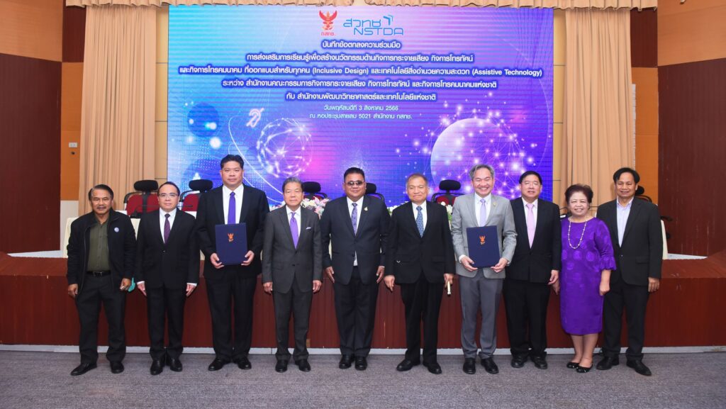 การลงนามบันทึกข้อตกลงความร่วมมือระหว่างสำนักงาน กสทช. และ สวทช. ครั้งนี้ เป็นการแลกเปลี่ยนความรู้ประสบการณ์ร่วมกัน เพื่อให้เกิดการสร้างนวัตกรรมด้านกิจการกระจายเสียง กิจการโทรทัศน์ และกิจการโทรคมนาคมที่มีคุณภาพและสอดคล้องกับความต้องการของผู้บริโภคทุกกลุ่ม ไม่ว่าจะเป็นกลุ่มผู้พิการ ผู้สูงอายุ ผู้ด้อยโอกาส รวมทั้งกลุ่มคนทั่วไป และเพื่อส่งเสริมการเรียนรู้ของภาคการศึกษาเพื่อสร้างนวัตกรรมที่ออกแบบสำหรับทุกคน (Inclusive Design) ในยุคดิจิทัล (Digital World) และการจัดให้มีบริการที่ส่งเสริมการเข้าถึงและใช้ประโยชน์ผ่านเทคโนโลยีสิ่งอำนวยความสะดวก (Assistive Technology) โดยเป็นการสร้างประสบการณ์เรียนรู้ การมีส่วนร่วม และลดความเหลื่อมล้ำในสังคม ซึ่งสอดคล้องกับแนวคิดการพัฒนากำลังคนสู่ยุคดิจิทัล อีกทั้งยังเป็นการสร้างโอกาสทางสังคม (Social Mobility) ให้กับกลุ่มคนที่ยังต้องการเติมเต็มศักยภาพ โดยการส่งเสริมการใช้เทคโนโลยีเพื่อพัฒนาตัวเองและเพิ่มความสามารถในการดำเนินชีวิต และสร้างความเข้าถึงที่เท่าเทียมกัน (Equal Access) ในการเข้าถึงและใช้ประโยชน์เทคโนโลยีและสารสนเทศให้กับทุกคนในสังคม