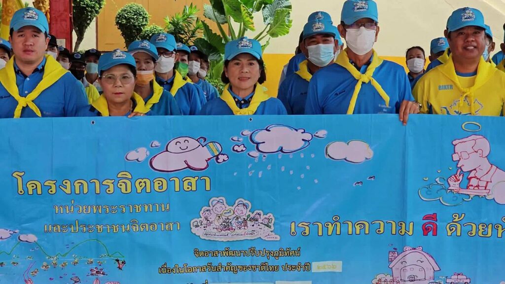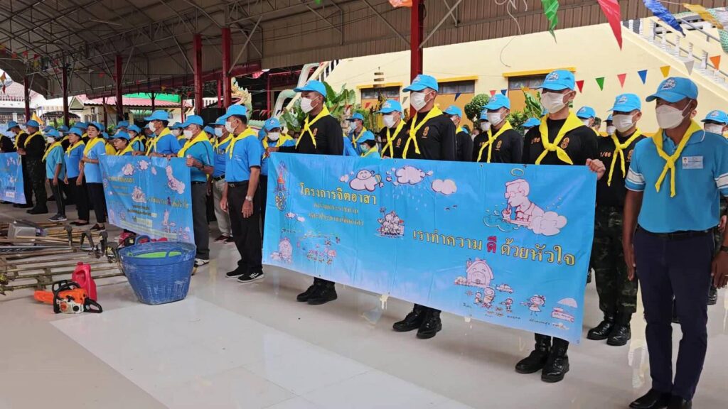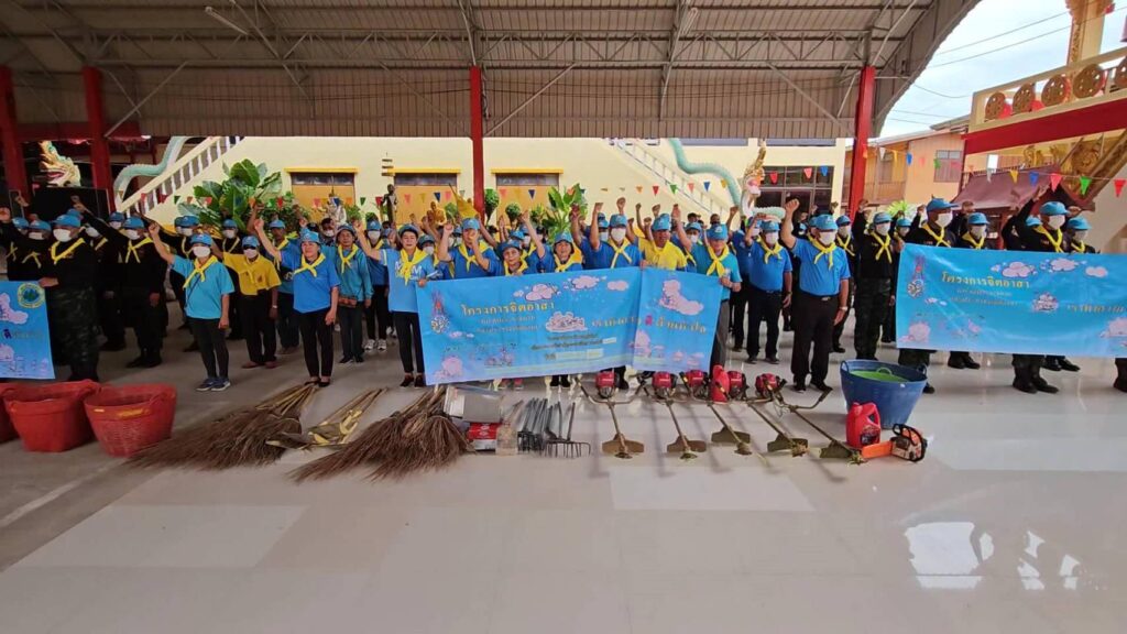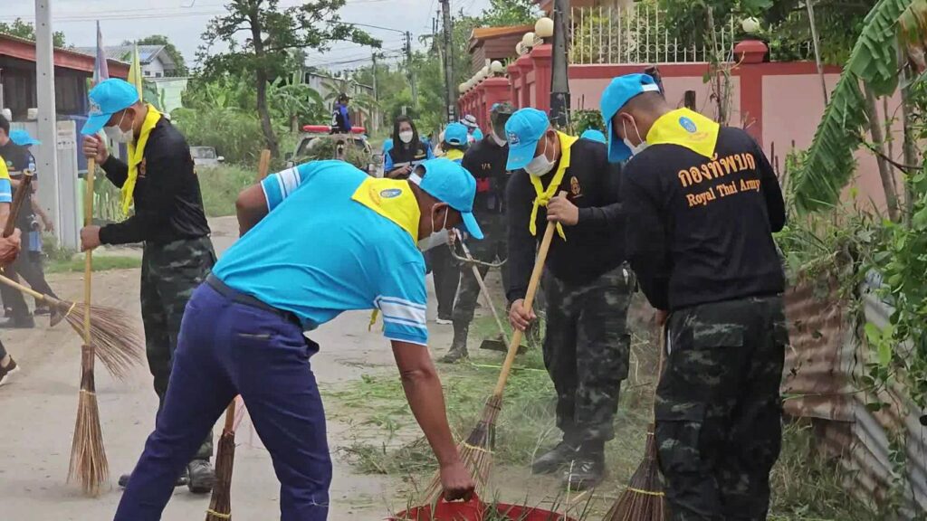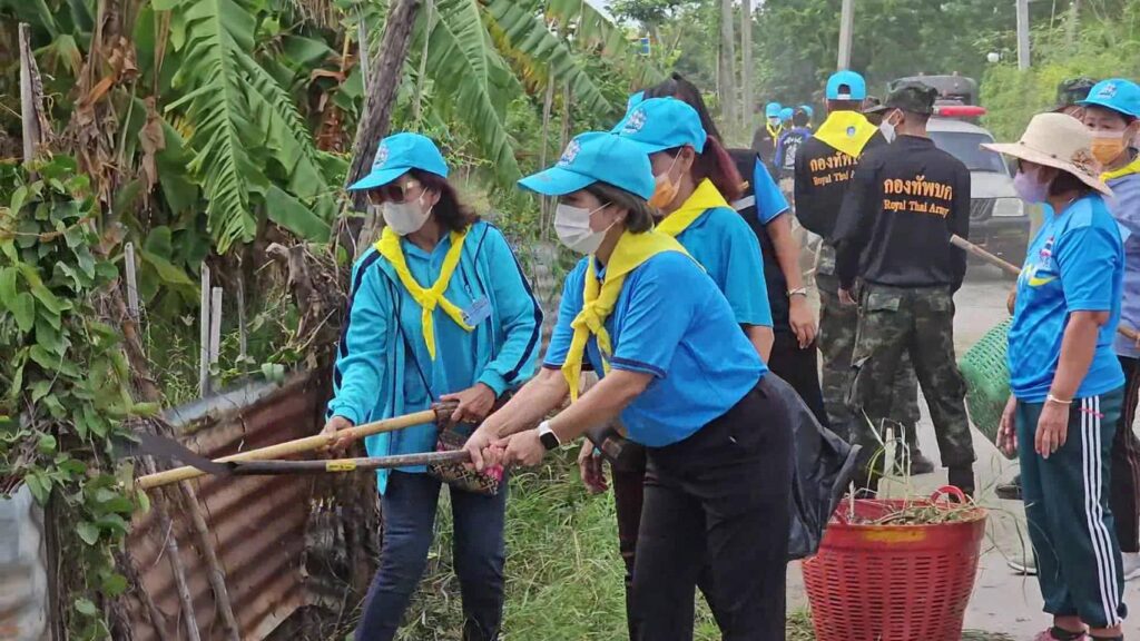 ซึ่งกำลังพลจิตอาสาพระราชทาน และ ผู้นำชุมชน ตลอดจน จิตอาสาภาคประชาชนในพื้นที่ตำบลเขาสามยอด ได้ร่วมกัน เก็บกวาดทำความสะอาด ตัดหญ้า ตัดแต่งกิ่งไม้ เพื่อปรับภูมิทัศน์และพัฒนาสิ่งแว้ดล้อม บริเวณพื้นที่โดยรอบชุมชนเขาสามยอด ที่ 11 และ 13 บ้านหนองบัวขาว เพื่อเป็นแบบอย่างของ ชุมชนหน้าอยู่ หน้าบ้านหน้ามอง แสดงออกถึงความรู้รักสามัคคี และจงรักภักดี ด้วยการทำความดีเพื่อสาธารณะประโยชน์ร่วมกัน ถวายเป็นพระราชกุศล และ แด่สมเด็จพระนางเจ้าสิริกิติ์ พระบรมราชินีนาถ พระบรมราชชนนีพันปีหลวง เนื่องในโอกาส เฉลิมพระชนมพรรษา12 สิงหาคม 2566 อย่างพร้อมเพรียงกัน