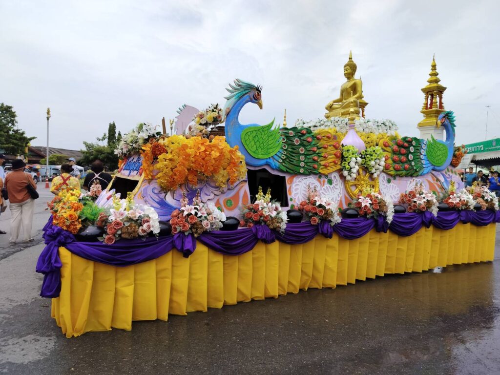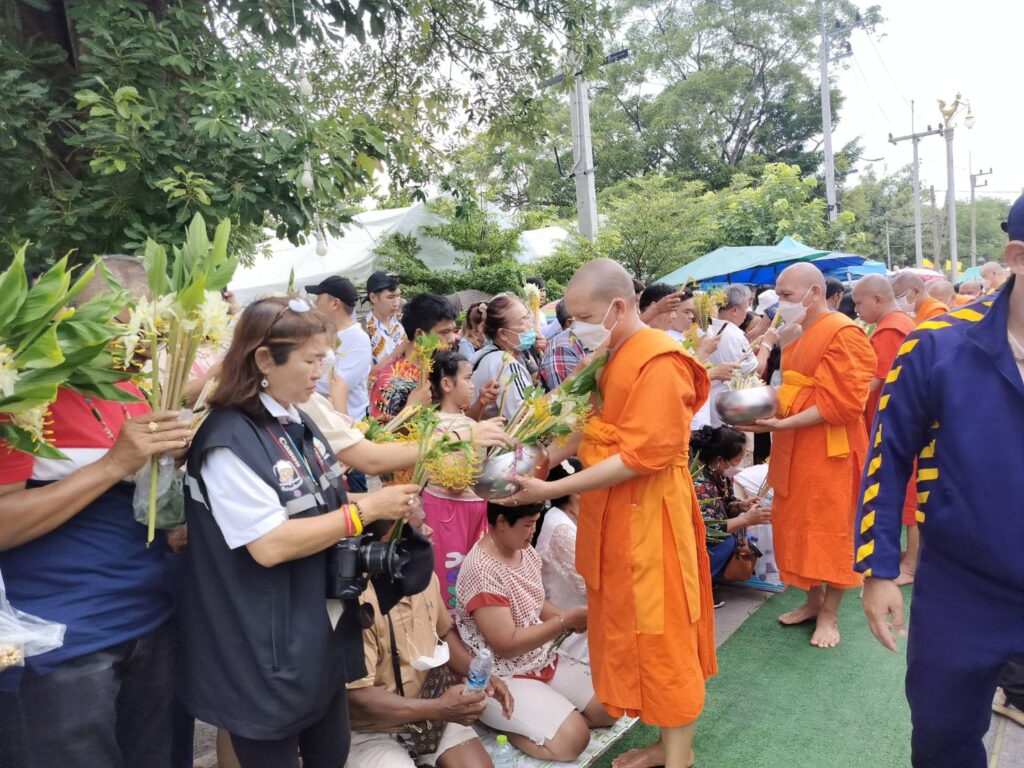 วันสุดท้ายในงานประเพณีตักบาตรดอกไม้ในอำเภอพุทธบาทสระบุรีมีประชาชนแห่มาท่องเที่ยวและตักบาตรกันอย่างคึกคัก
